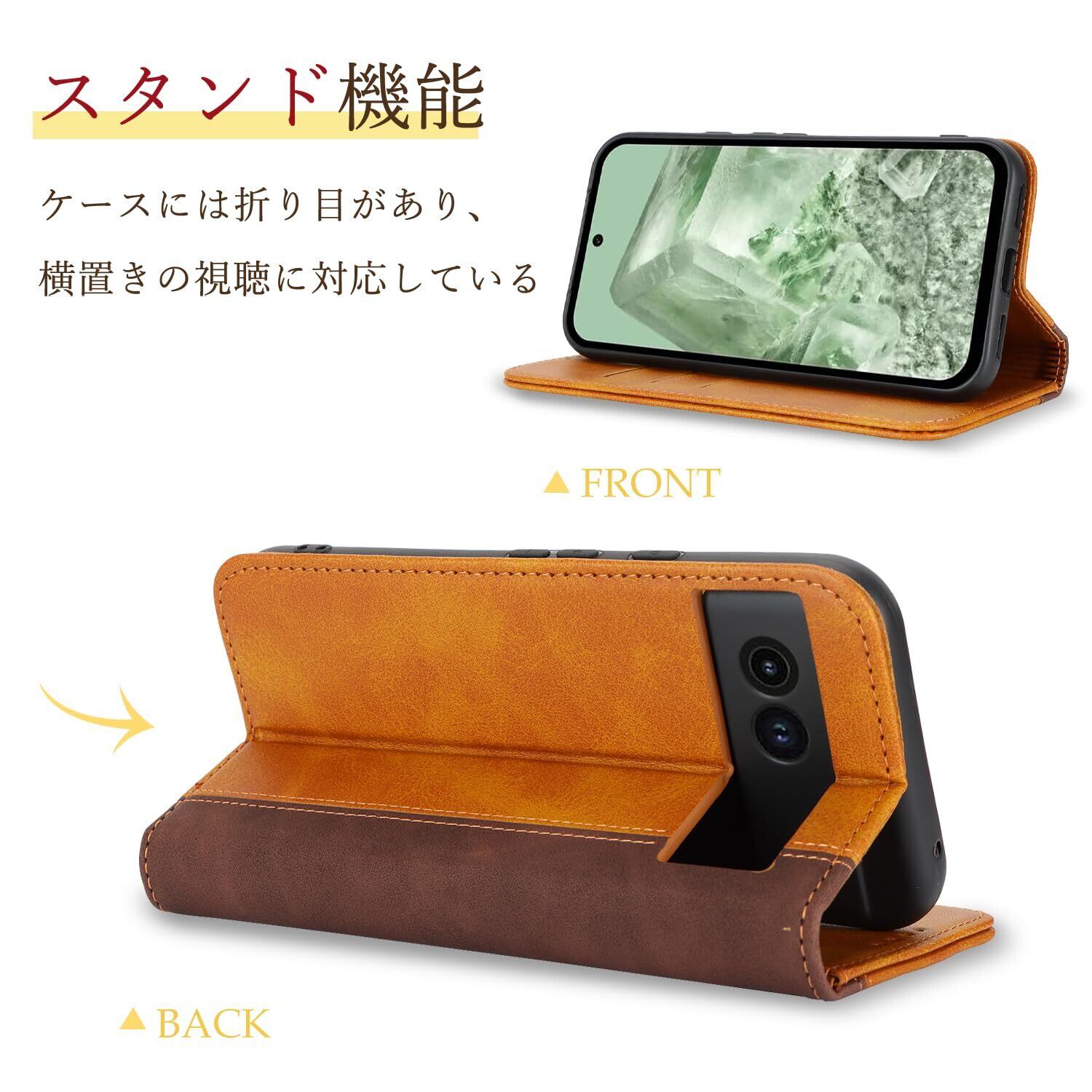 Havaya Google Pixel 8a ケース pixel 8a ケース ピクセル8a ケース グーグル スマホケース docomo 手帳型 au 耐衝撃 カバー SoftBank マグネット式 カード収納 スタンド機能 レザー -イエロー+ブラウン | hananoki