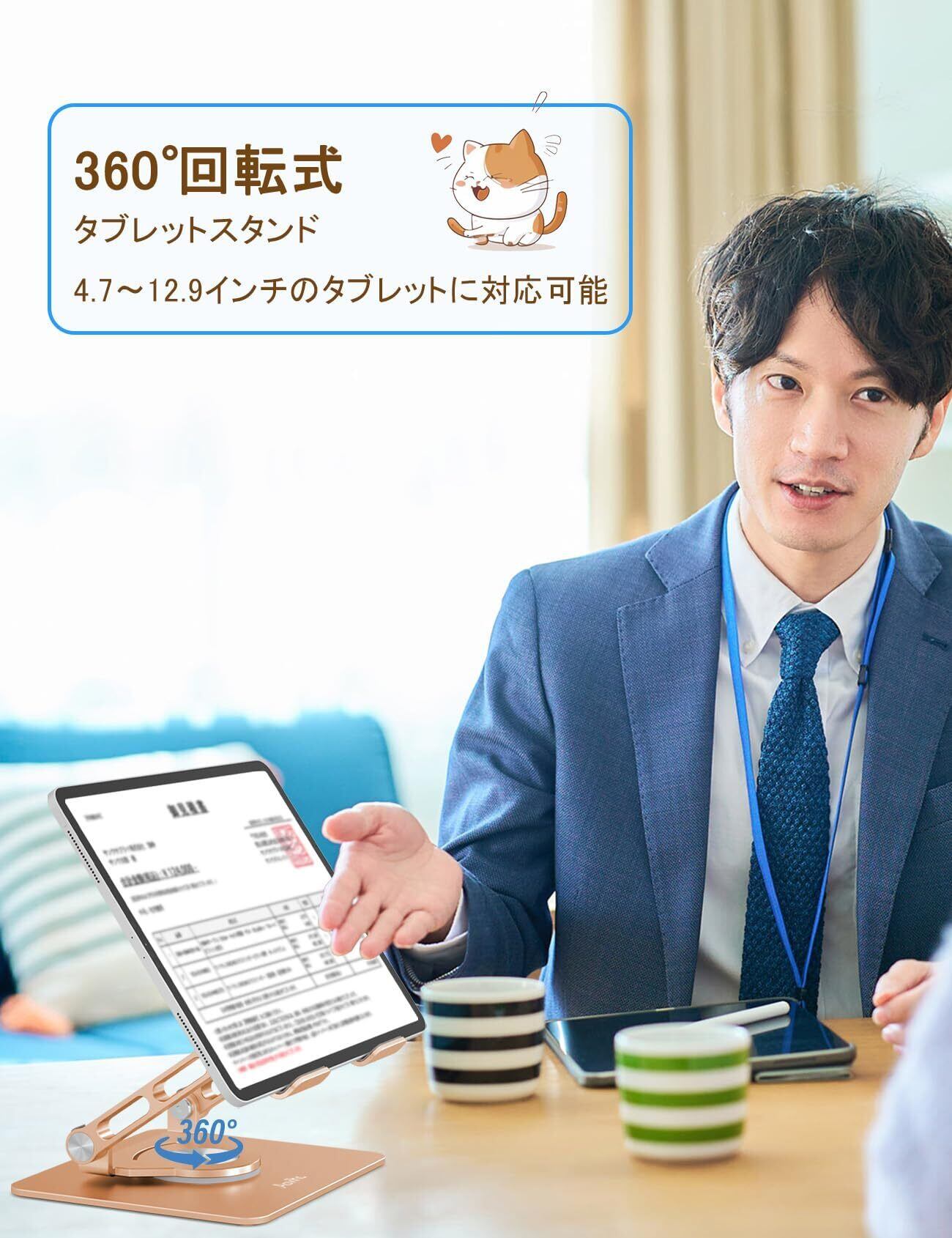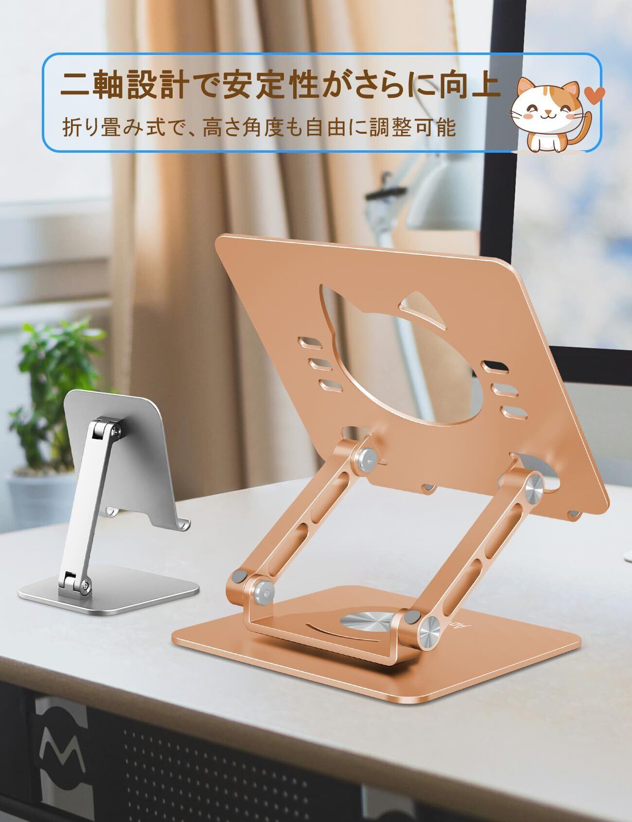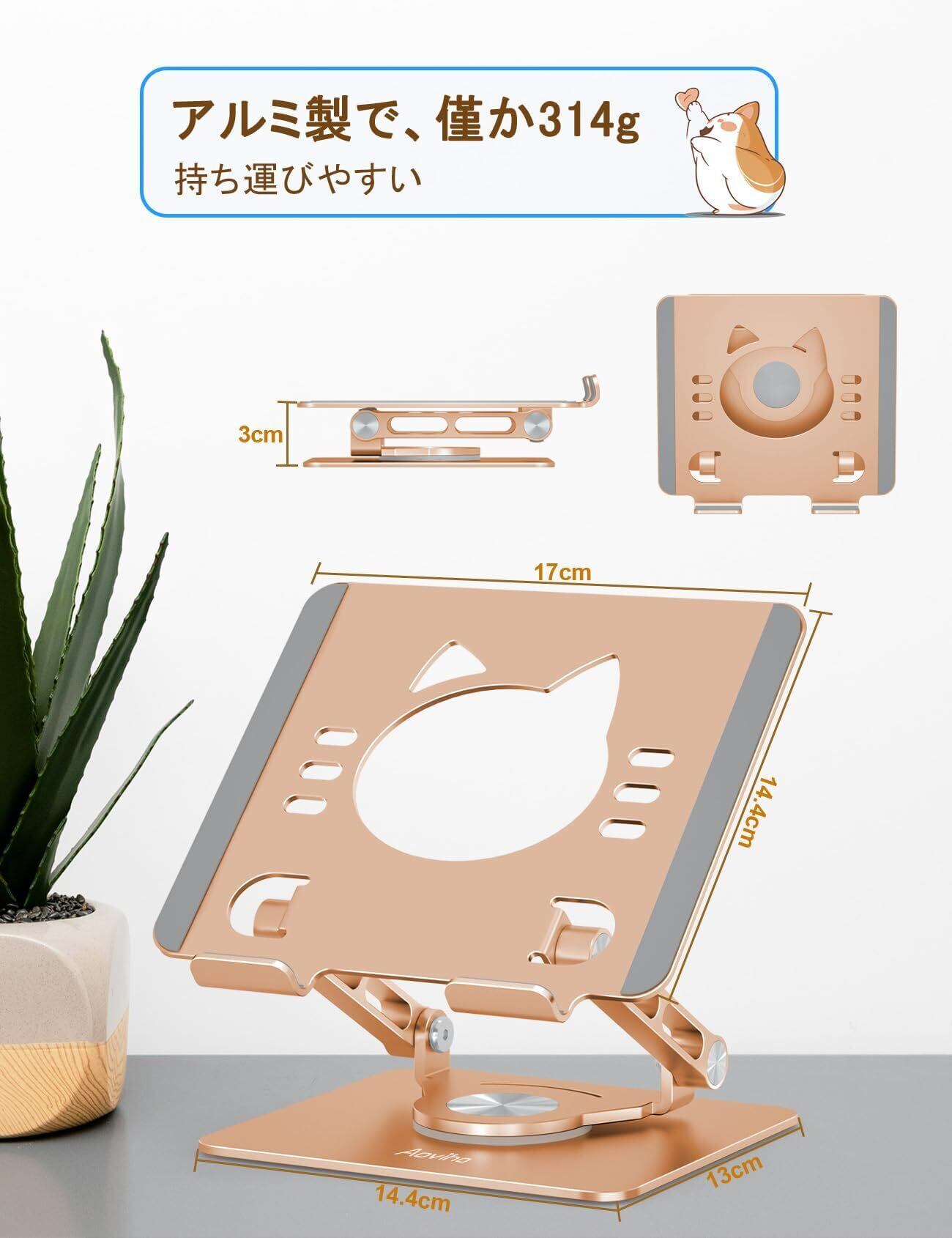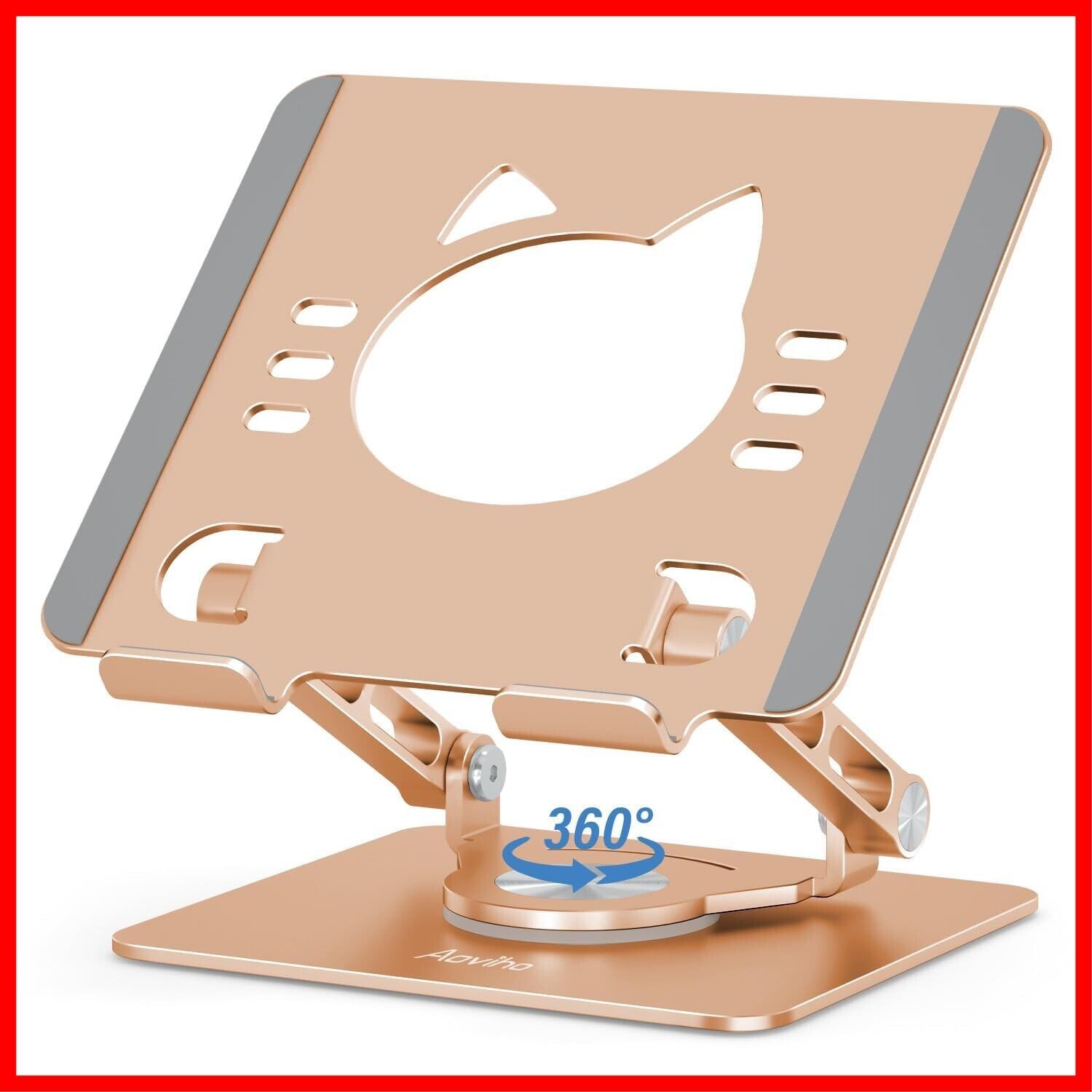 アオビホ(Aoviho) - ipadスタンド - タブレットスタンド - 360度回転式 - アイパッド 置き台 卓上ホルダー 折り畳み式 高さ角度調整可能 スマホ立て tablet stand 充電可能 持ち運び便利 姿勢改善 アルミ製 軽量 人間工学 iPad mini/iPad air/Pro/Switch/Kindleなど 4.7-12.9インチに対応 (ローズゴールド)