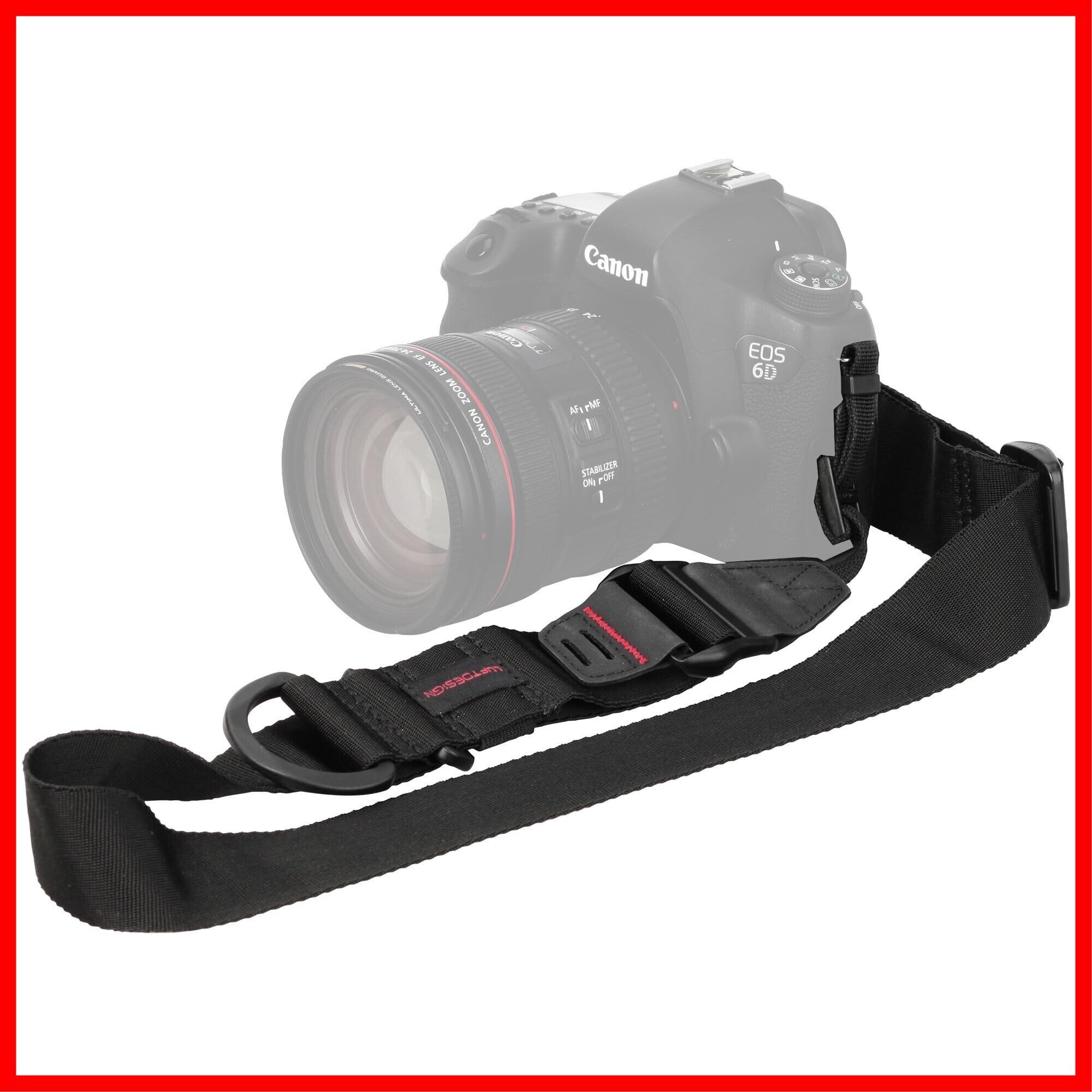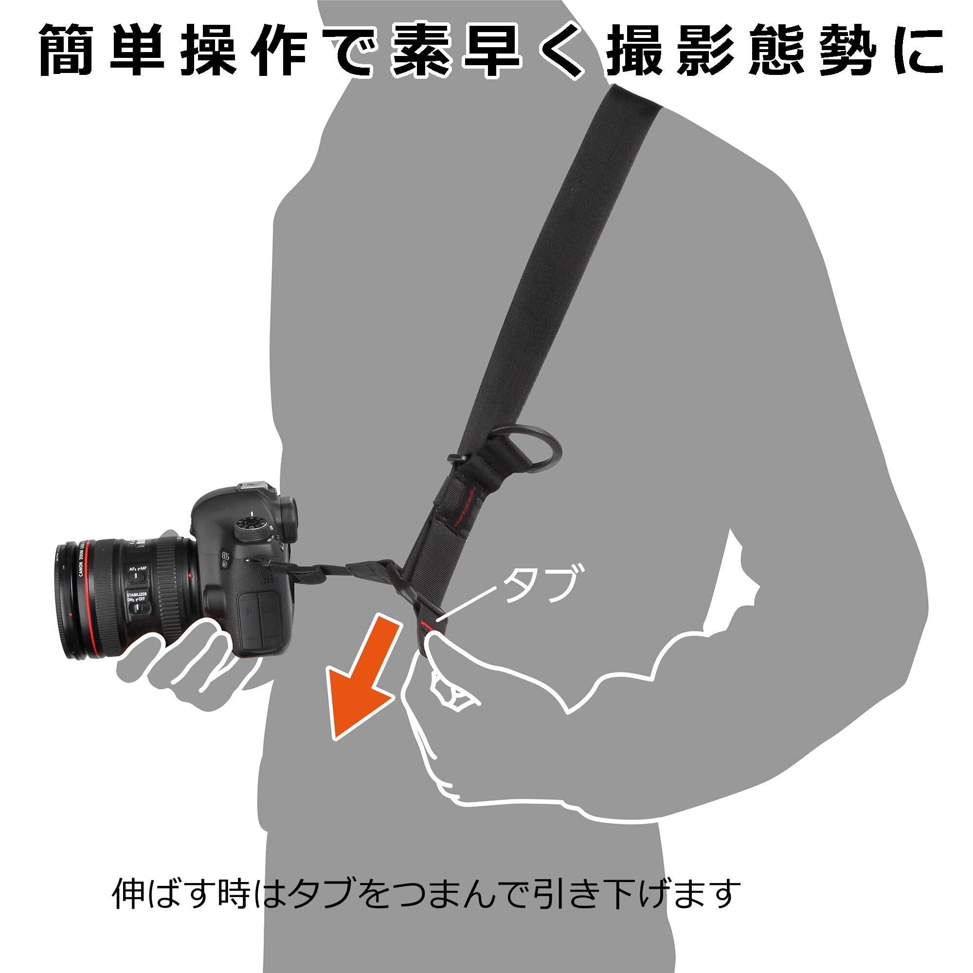 簡単な操作で素早く伸ばしたり縮めたりできるショルダーストラップです。 瞬時に伸ばして撮影に移行できるのでシャッターチャンスを逃しません。 縮めると身体に密着しカメラ携行時の揺れを抑えます。 一眼レフカメラに最適なストラップ幅38mmタイプです。