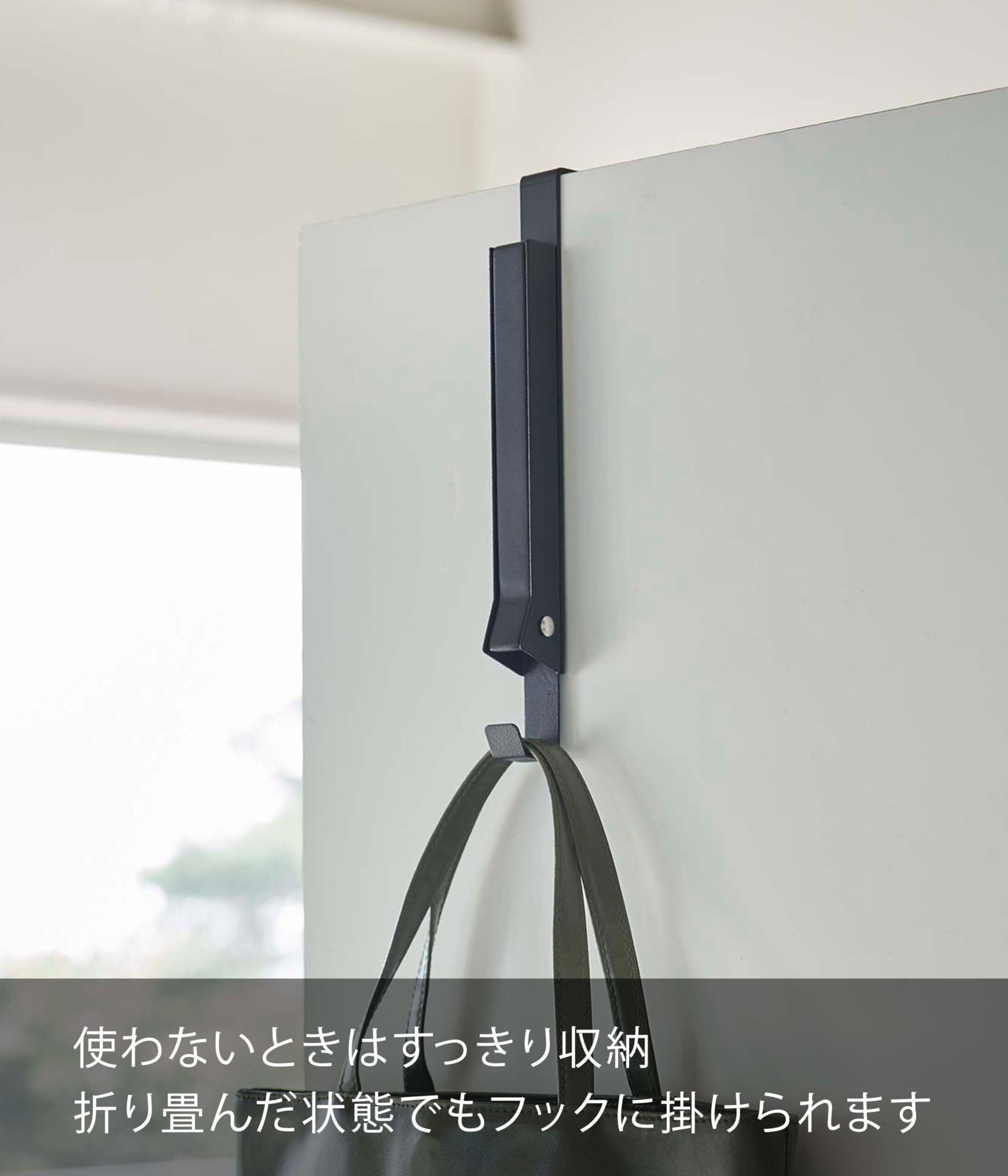 山崎実業(Yamazaki) 使わない時は収納できる ドアハンガー ブラック 約W2XD7~20.5XH23.5cm(使用時) タワー 折り畳み スッキリ収納 簡単設置 5515