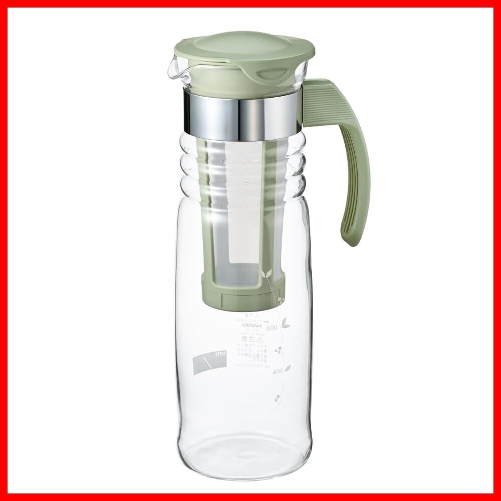 HARIO(ハリオ)かご網付き水出し茶ポット 実用容量1200ml スモーキーグリーン 耐熱ガラス製 熱湯・食洗器OK 冷水筒 日本製 HCC-12-SG