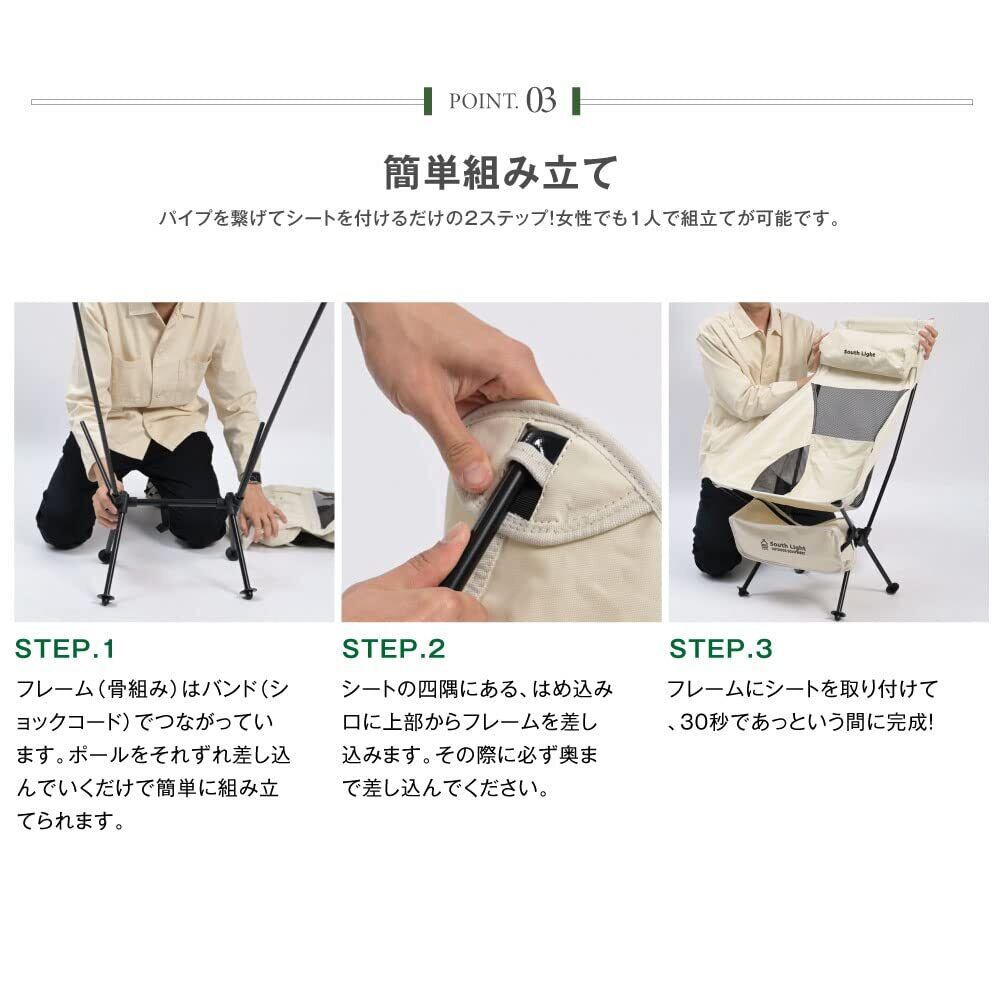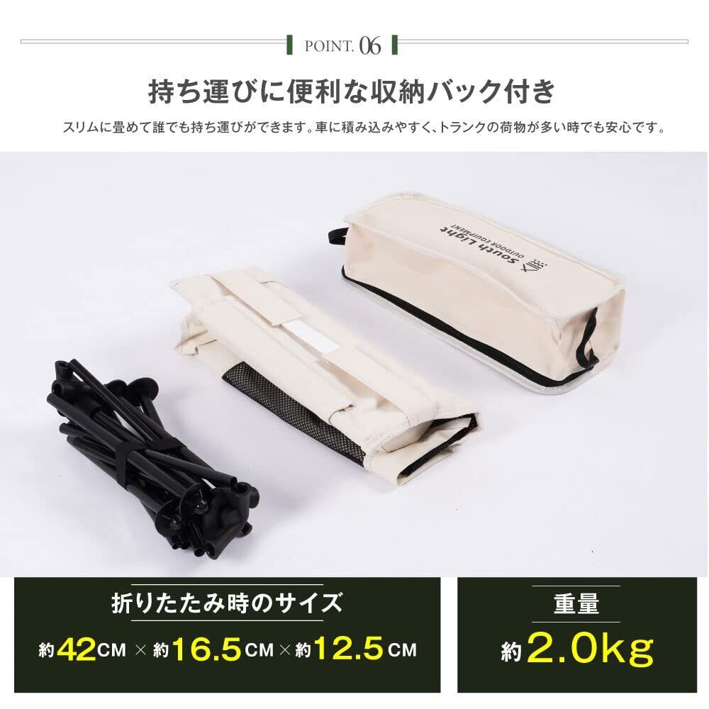 【仕様】製品名:アウトドアチェア 型番:sl-yz57-iv 展開サイズ:(約)W56xD60xH86.5cm、収納サイズ:(約)W42xD16.5xH12.5cm カラー:アイボリー 重さ:2.0kg 材質:スチール(フレーム)、ポリエステル(シート、オックスフォード織) 梱包内容:フレームx1、シートx1、収納袋x1