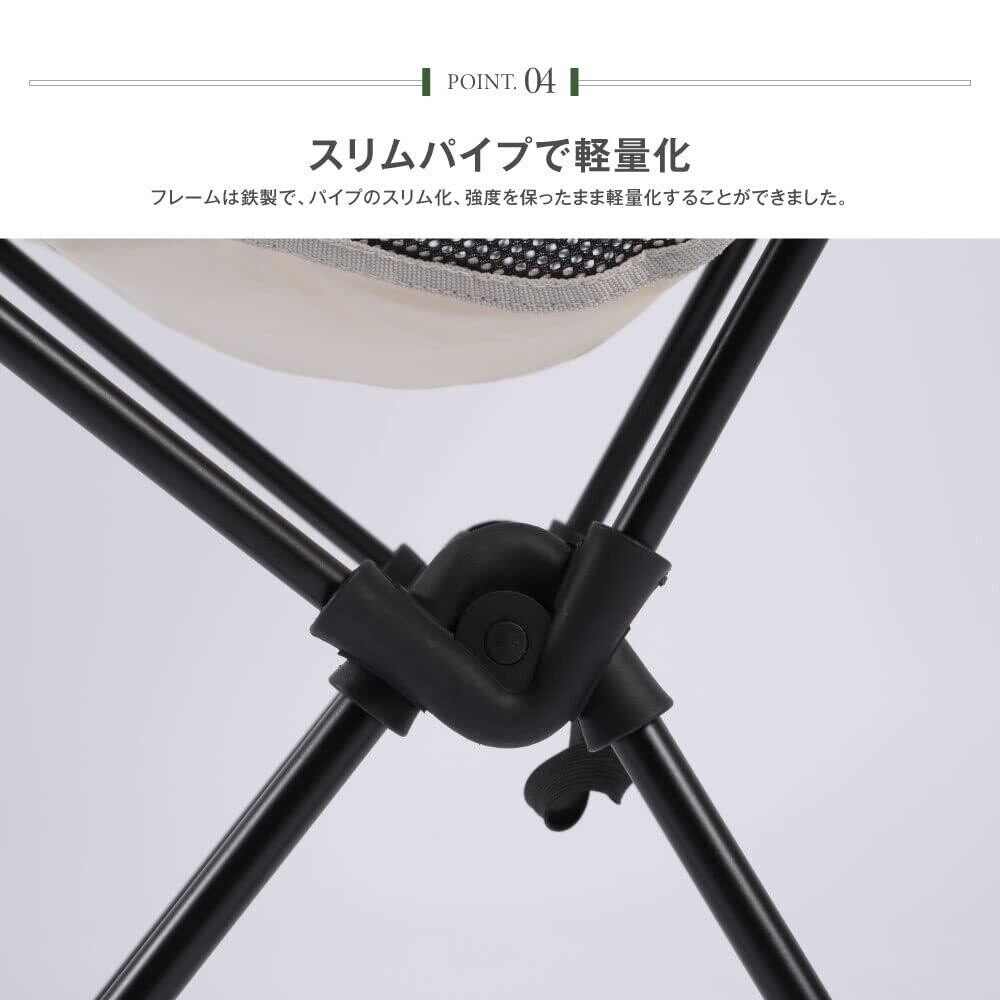 キャンプやレジャーなど快適に使える折り畳み式のアウトドアチェア。スタンドパイプはしっかり固定された構造で安定感があります。