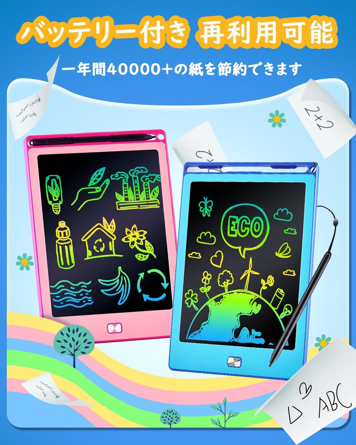 【耐久性に優れ、環境にも優しい】お絵描きボードに直接描けるので、インクや紙を購入する必要がありません。ゴミを減らすことで、お金を節約できるだけでなく、環境保護にも役立ちます。電子メモを使用する際、部屋や服を汚す心配もありません。この落書きボードにはCR2025電池が内蔵されており、10万回以上使用できます。電池が切れても簡単に交換できます。