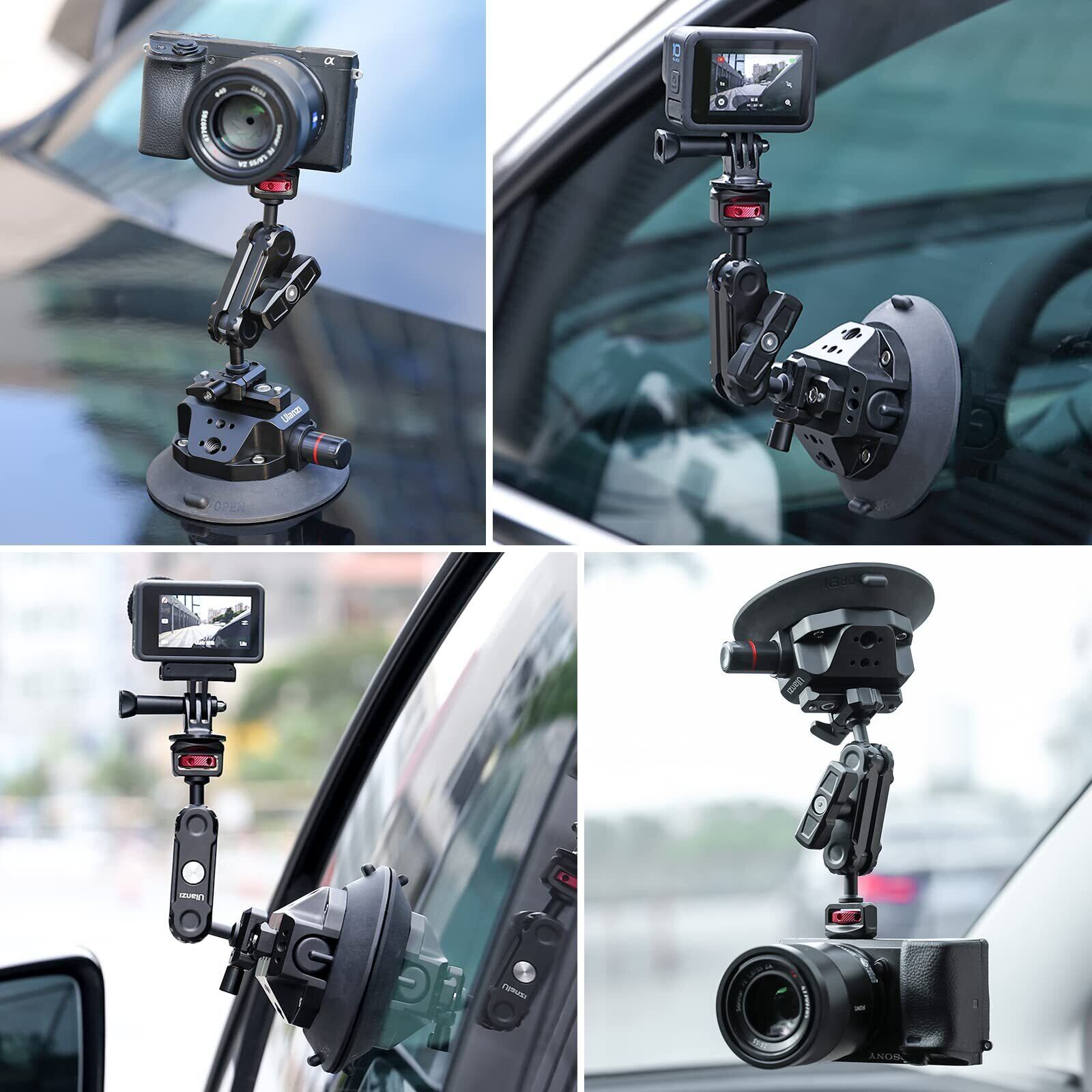 Ulanzi SC-02 カメラ用吸盤マウント 車載マウント GoPro Insta360 DJI カメラ用 360°回転 アルミ合金製 車載ホルダー 車載用車外フロント フロント・リア・サイドのガラスに吸着でき 取り付け簡単 4.5インチ 耐荷重3kg GoPro Max Hero11 10 9 8 7 6 5 Insta360 DJI Osmo Pocket 2 Action 2 3対応