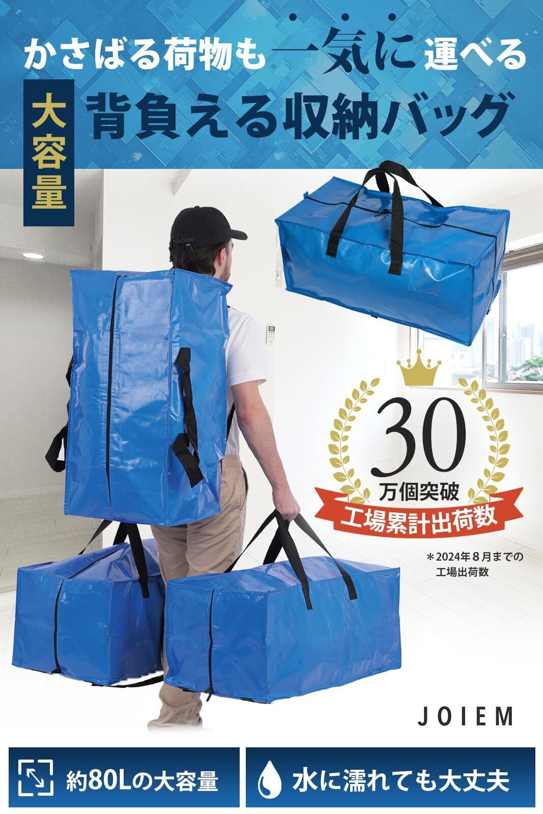 背負える収納袋 大きいバッグ 収納ケース 引越しバッグ 大型収納袋 持ち手付き 布団収納バッグ 大容量 洋服収納 防塵防水バッグ 特大 JOIEM (2, 透明)