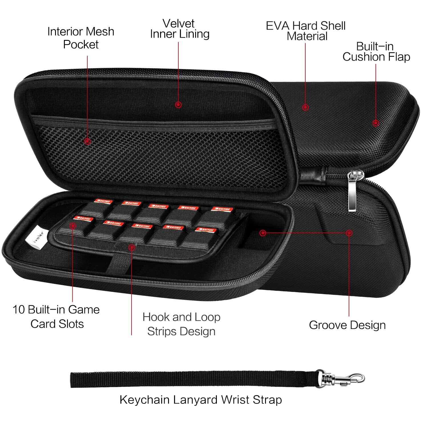 【Switch/Switch 有機ELモテルに対応】Switch ケース iVoler Switchに対応収納ケース ゲームカード/ケーブル/イヤホンなど全部収納可能 防塵 防水 耐衝撃 持ち運び便利 ブラック