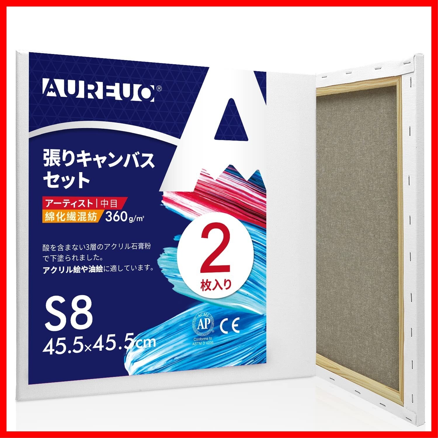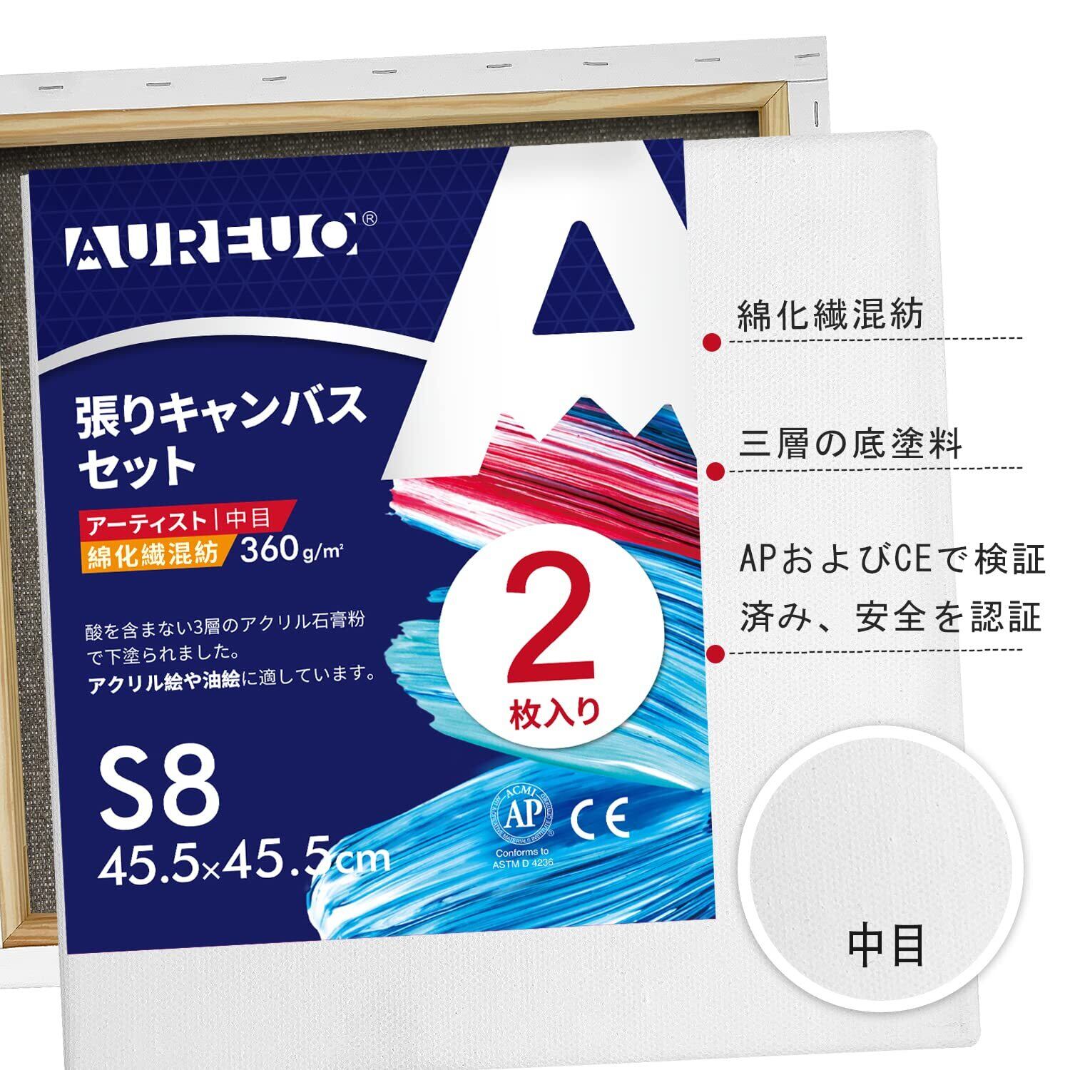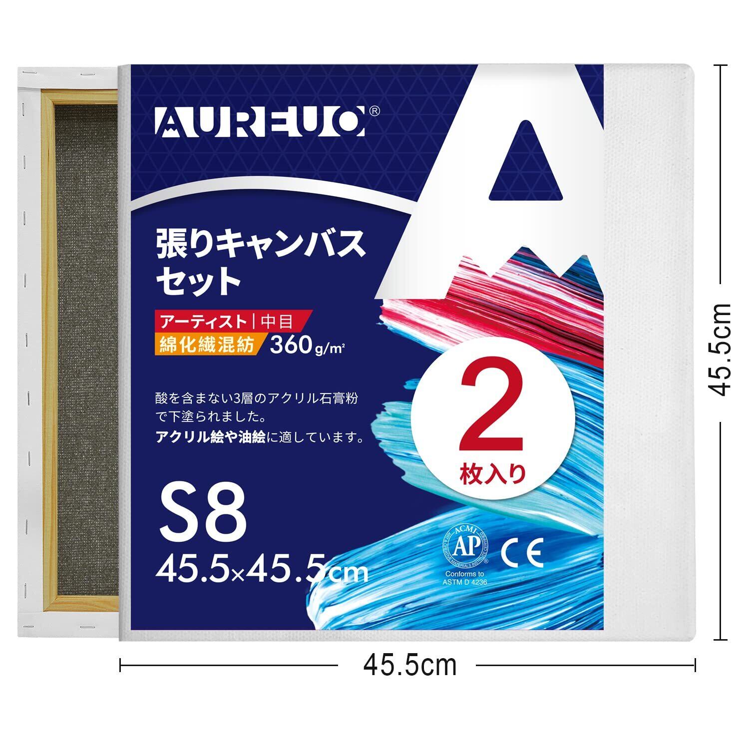 AUREUO 綿化繊混紡 張りキャンバス S8 (45.5cmX45.5cm) 2枚 - 中目布纹 水彩画・油絵画・アクリル兼用 - モダンアート・ポップアートに最適