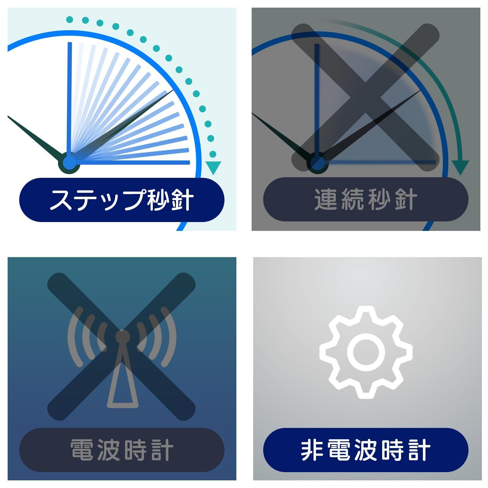 機能:ステップ秒針、防塵仕様(IP5X)、防滴仕様(IPX2)、置き掛け兼用
