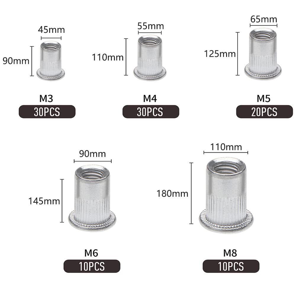 リベットナット アルミニウム製 ブラインドナット スレッドリベットナット 100個入 中空リベット DIY 機械 車 修理 部品 収納ケース付き M3 M4 M5 M6 M8