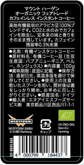 BTkviseQat マウントハーゲン オーガニック フェアトレード カフェインレスインスタントコーヒー100g 自然なカフェイン除去プロセスで香りそのままカフェイン99.7%カット