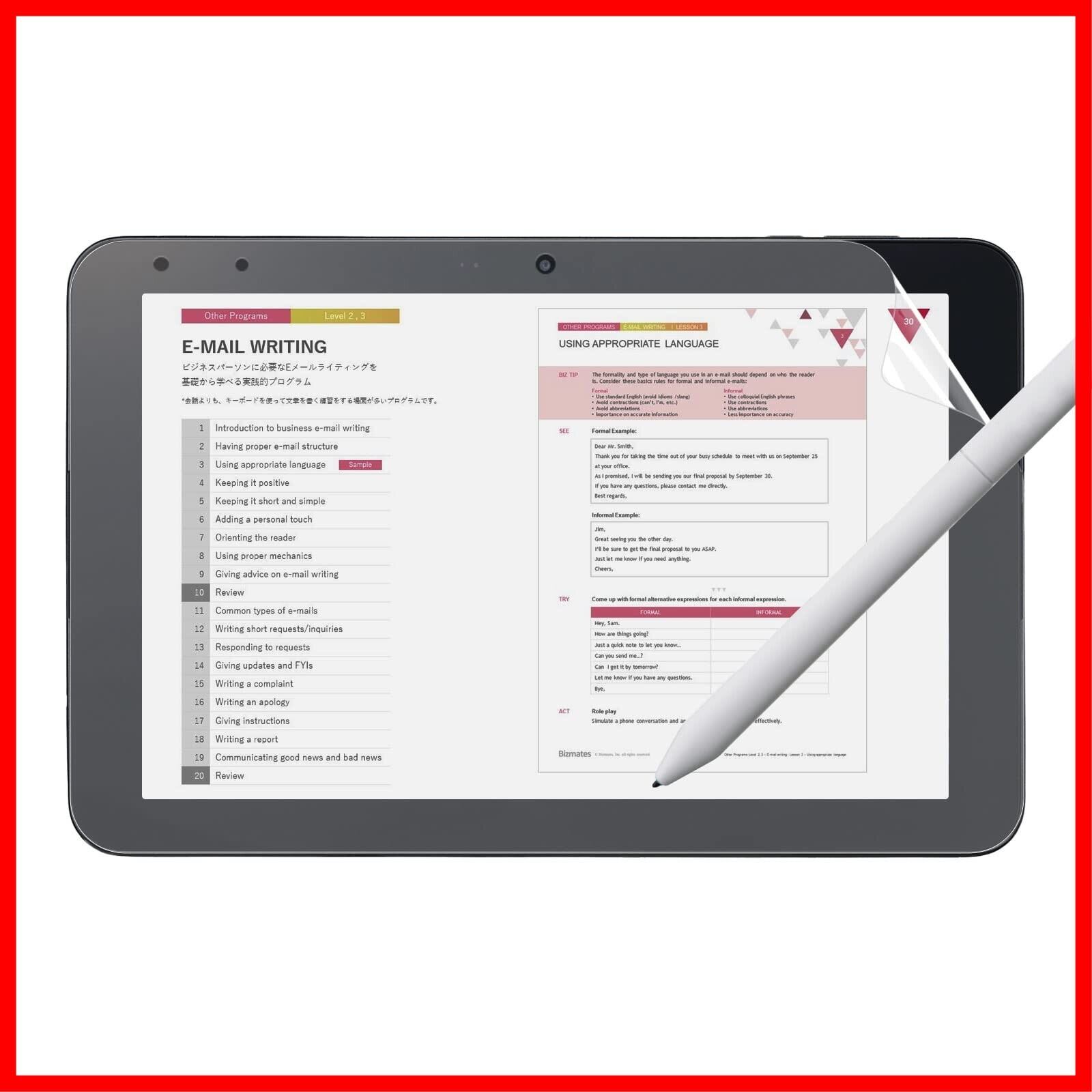 書き心地 : 画面のチラつきと光の映り込みを防ぐAG(アンチグレア)層の独自設計により、ほどよい摩擦で紙に鉛筆で書いた時の触感を再現したデジタイザーペン対応フィルムです。