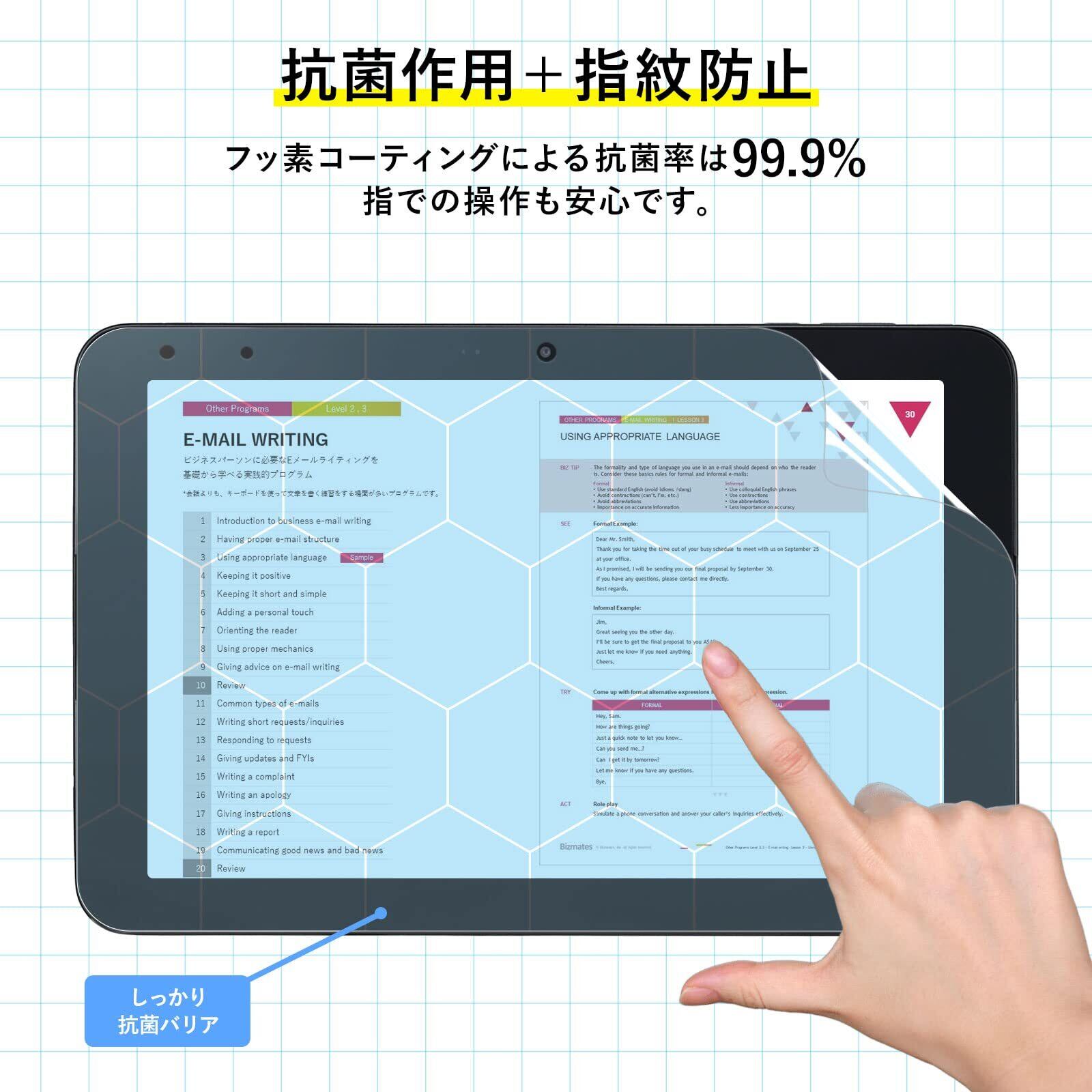 【抗菌仕様】液晶画面をキズや汚れから守る、抗菌タイプの液晶保護フィルムです。フィルムに抗菌機能を施し、細菌の繁殖を防ぎます。