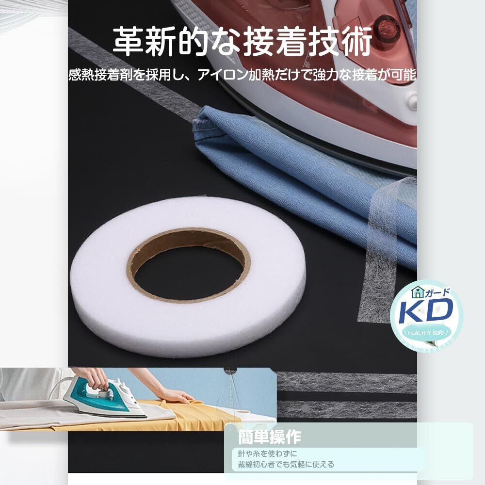 アイロン接着テープ アイロンテープ 洗濯可能 布用 熱接着 裾上げ 衣装製作 補修 糸も針も不要 簡単に接着できる両面接着シート 手芸用 布 ボンド お手軽裁縫テープ 幅25mm長さ約50m 簡単裁縫道具不要 ホワイト