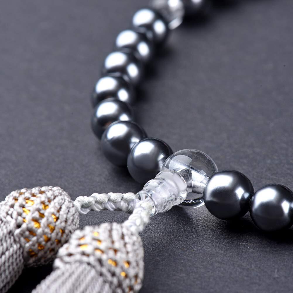 数珠 女性用 花珠 貝パール マグネット式 数珠袋付き 黒貝パール