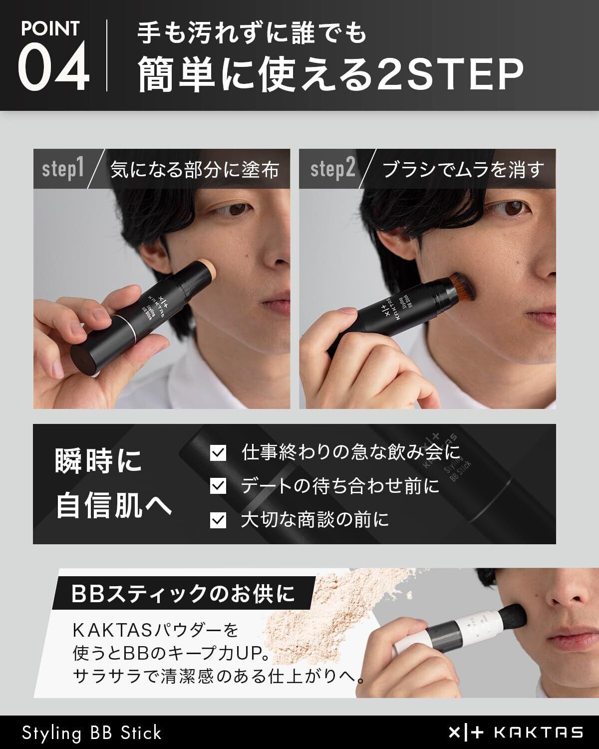 KAKTAS(カクタス) BBスティック ブラシ ナチュラルベージュ 青髭 毛穴 ニキビ クマ シミ UV テカリ メンズ BBクリーム コンシーラー ファンデーション 紫外線散乱剤配合 皮脂吸着パウダー配合 ノンケミカル BB