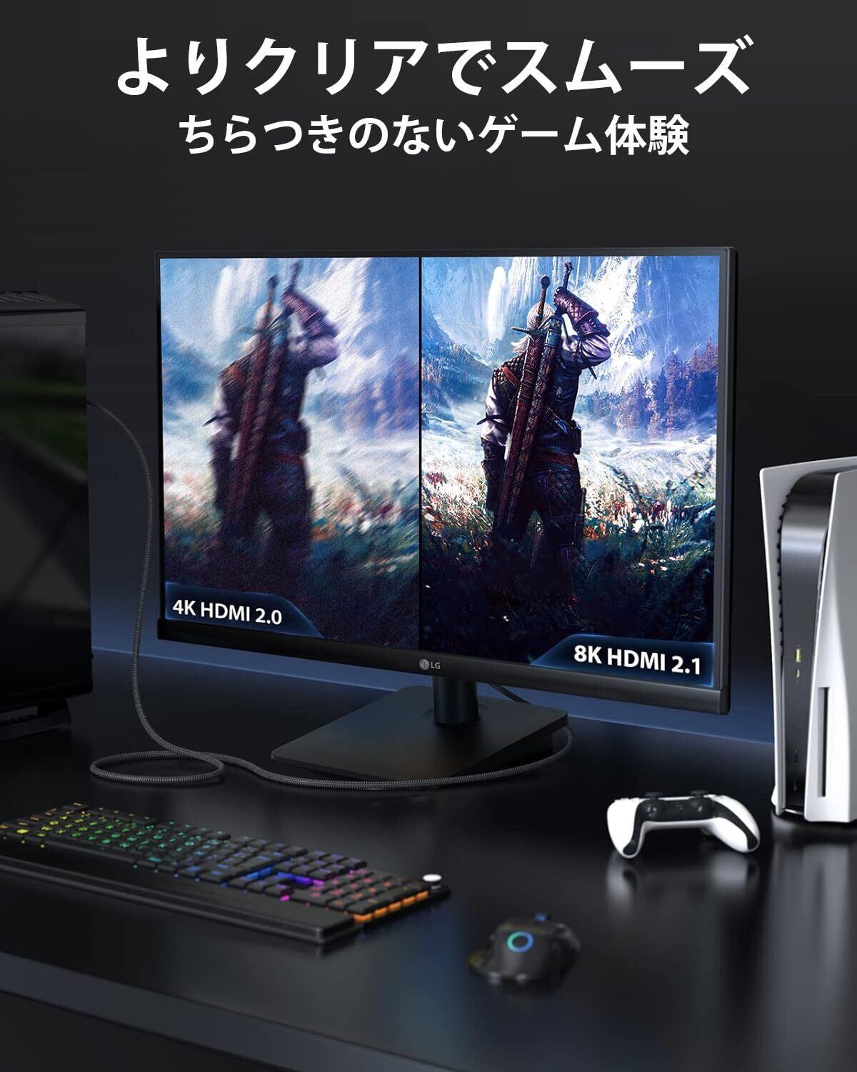 【幅広い互換性&上品な材質】:DynamicHDR・eARC・ゲームモードVRRを完全にサポートするウルトラハイスピードHDMIケーブルです。テレビ、オーディオ/ビデオレシーバー、サウンドバー、PCモニター、および新しいゲーム機Xbox SeriesXとSonyPS5、Nintendo Switch、2021 Macbook Pro 14/16(Apple M1 Pro/Max)、Blu-rayプレーヤー、プロジェクターその他のHDMI対応デバイスと互換性があります。三重編組プレミアムナイロン、10,000回以上のプラグアンドアンプラグテスト済み。金メッキの耐腐食性コネクタで高品質な映像や音声を楽しむことができます。