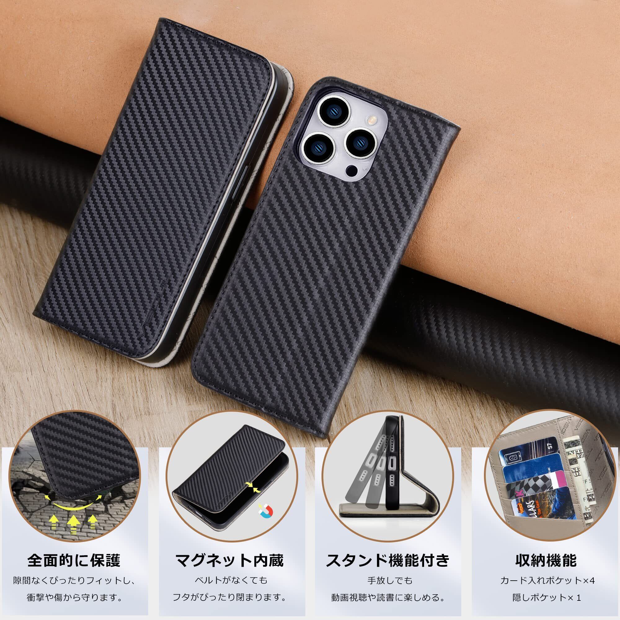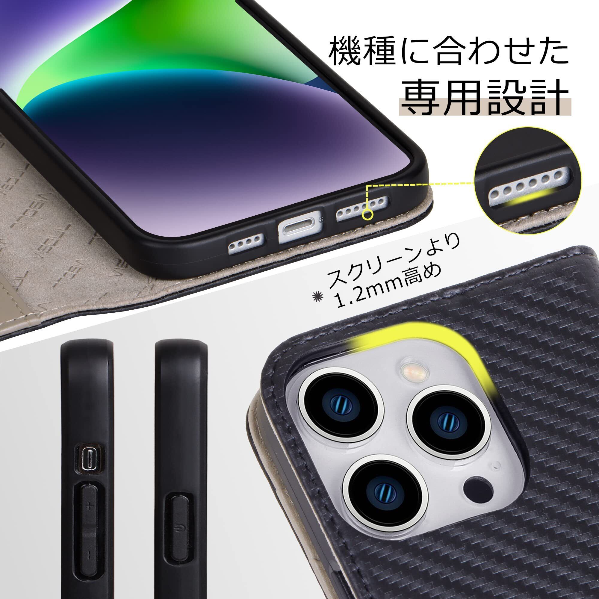 VISOUL iPhone 14 ProMax ケース 手帳型 アイフォン14 ProMax 手帳型 ケース 本革 レザー スマホケース カード収納 携帯ケース 全面保護 マグネット 横置きスタンド機能付き 柔軟なTPU素材 落下防止 iPhone 14 ProMaxケース アイフォン14 ProMax ケース iphone 14 ProMax 対応 6.7インチ カーボンレザー.ベージュ | hananoki