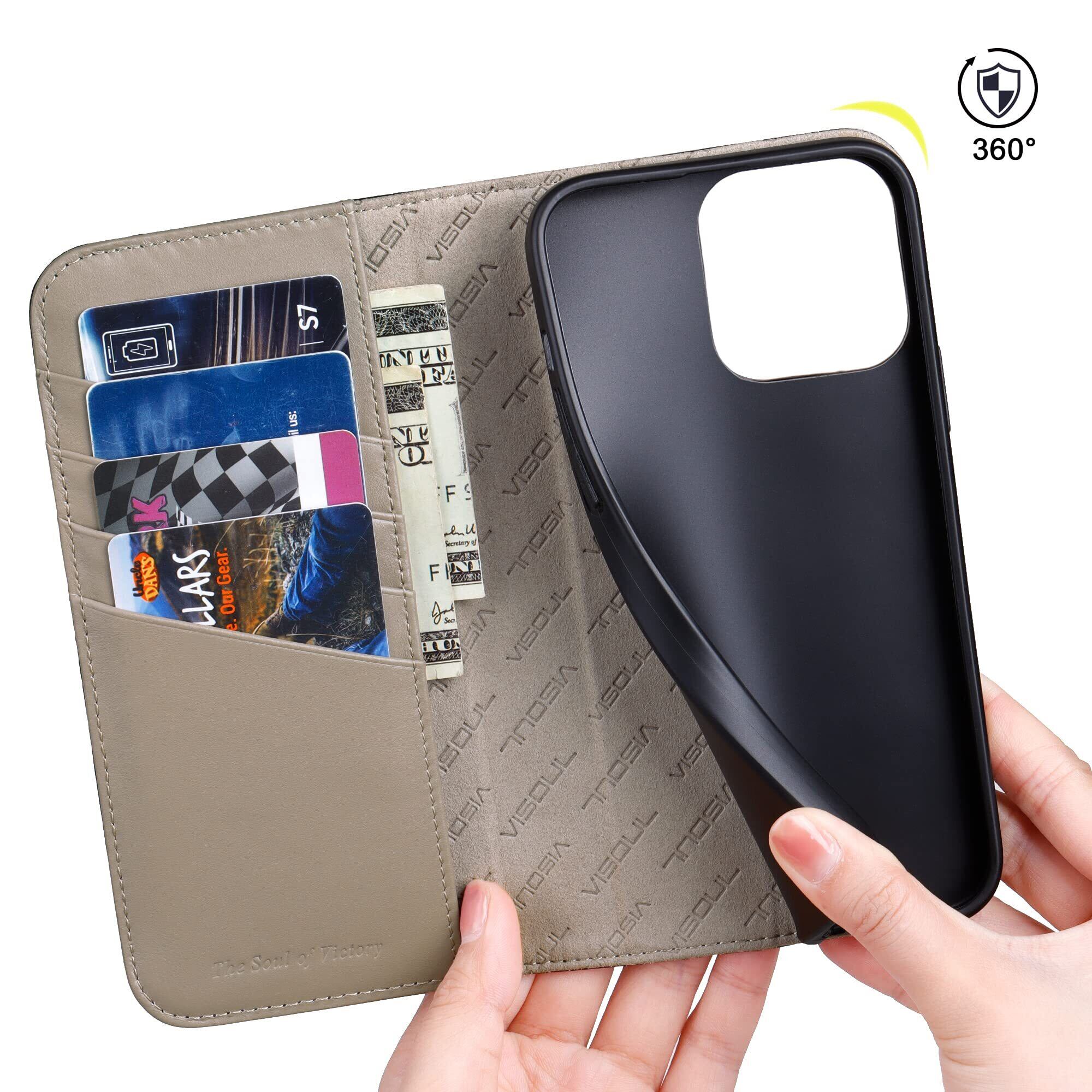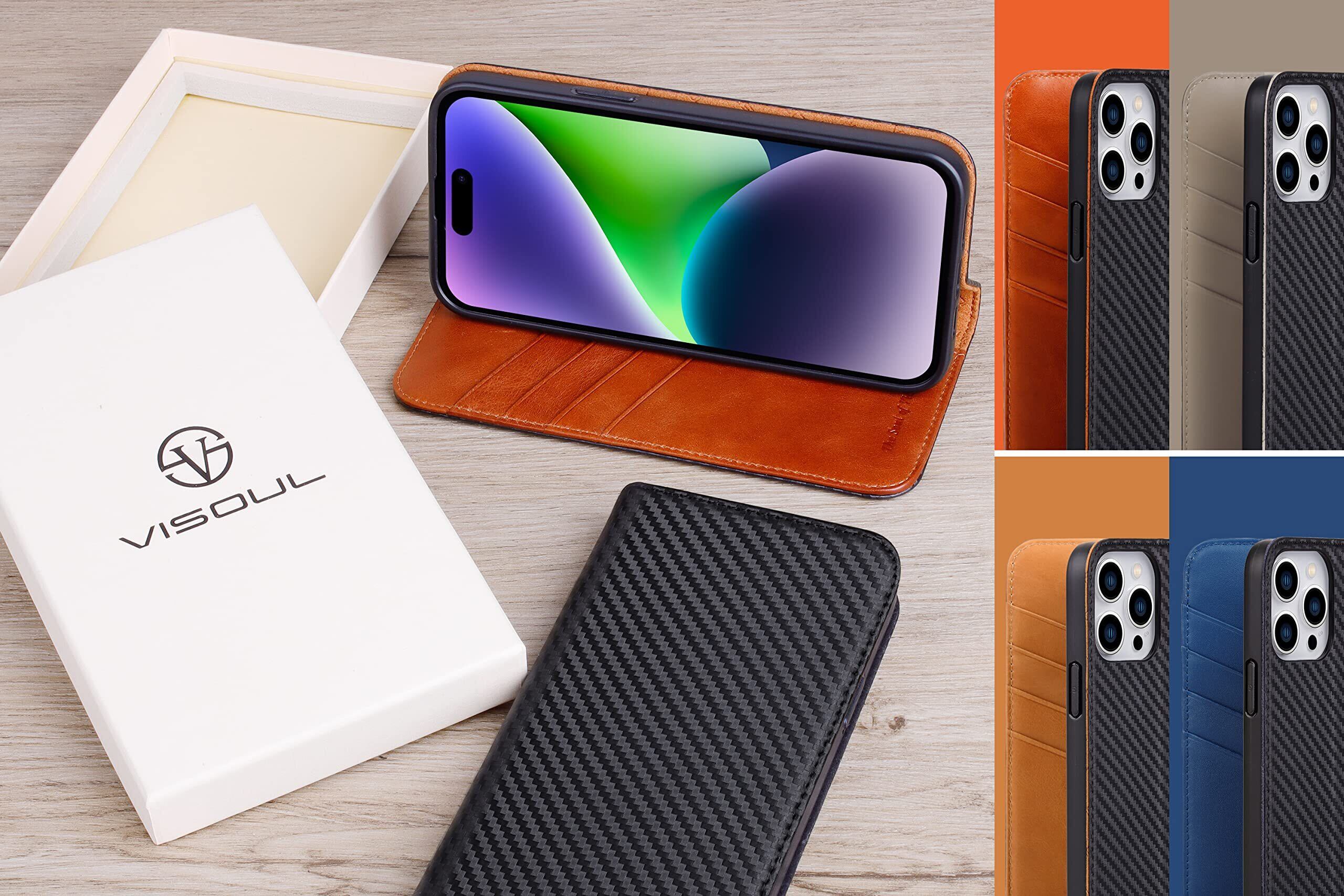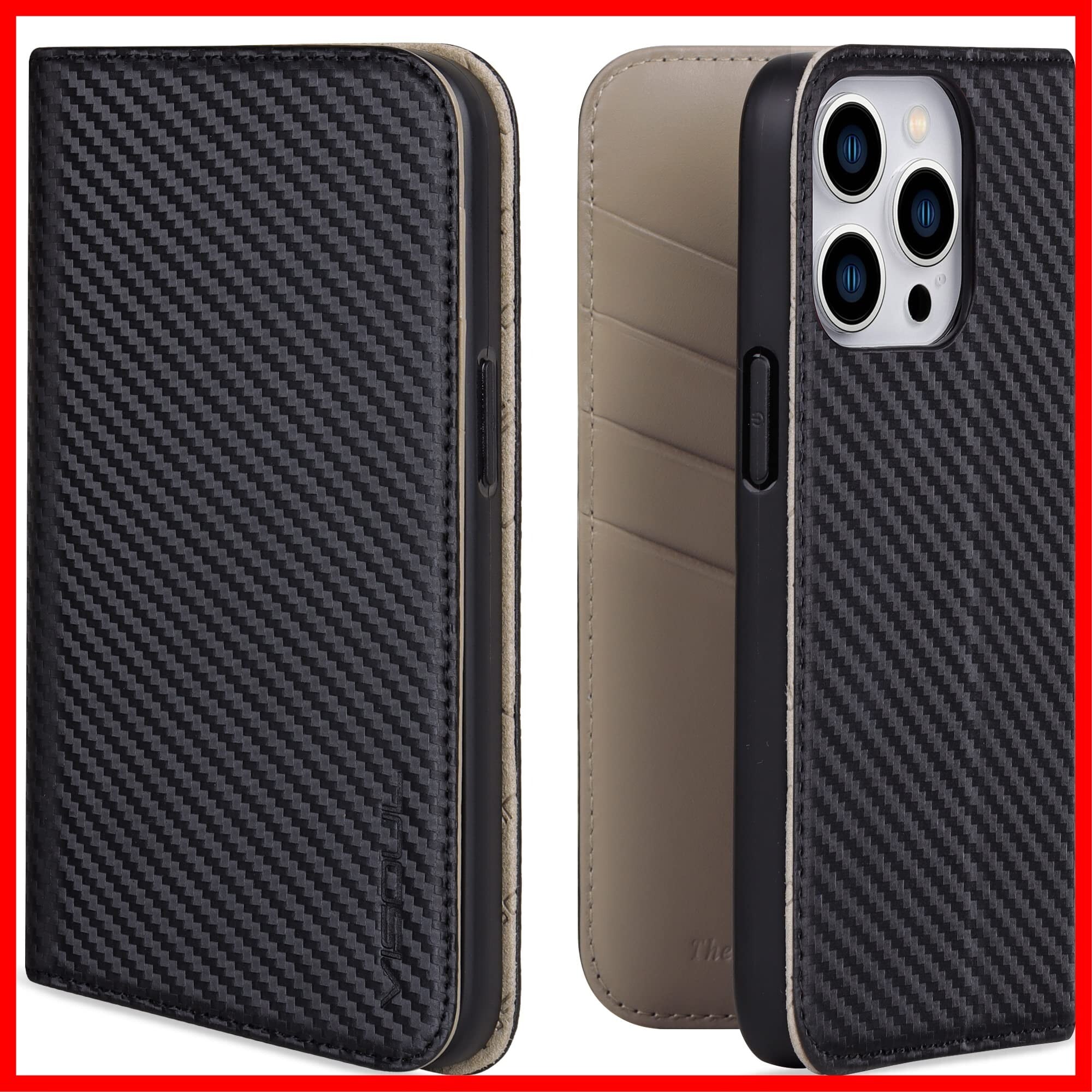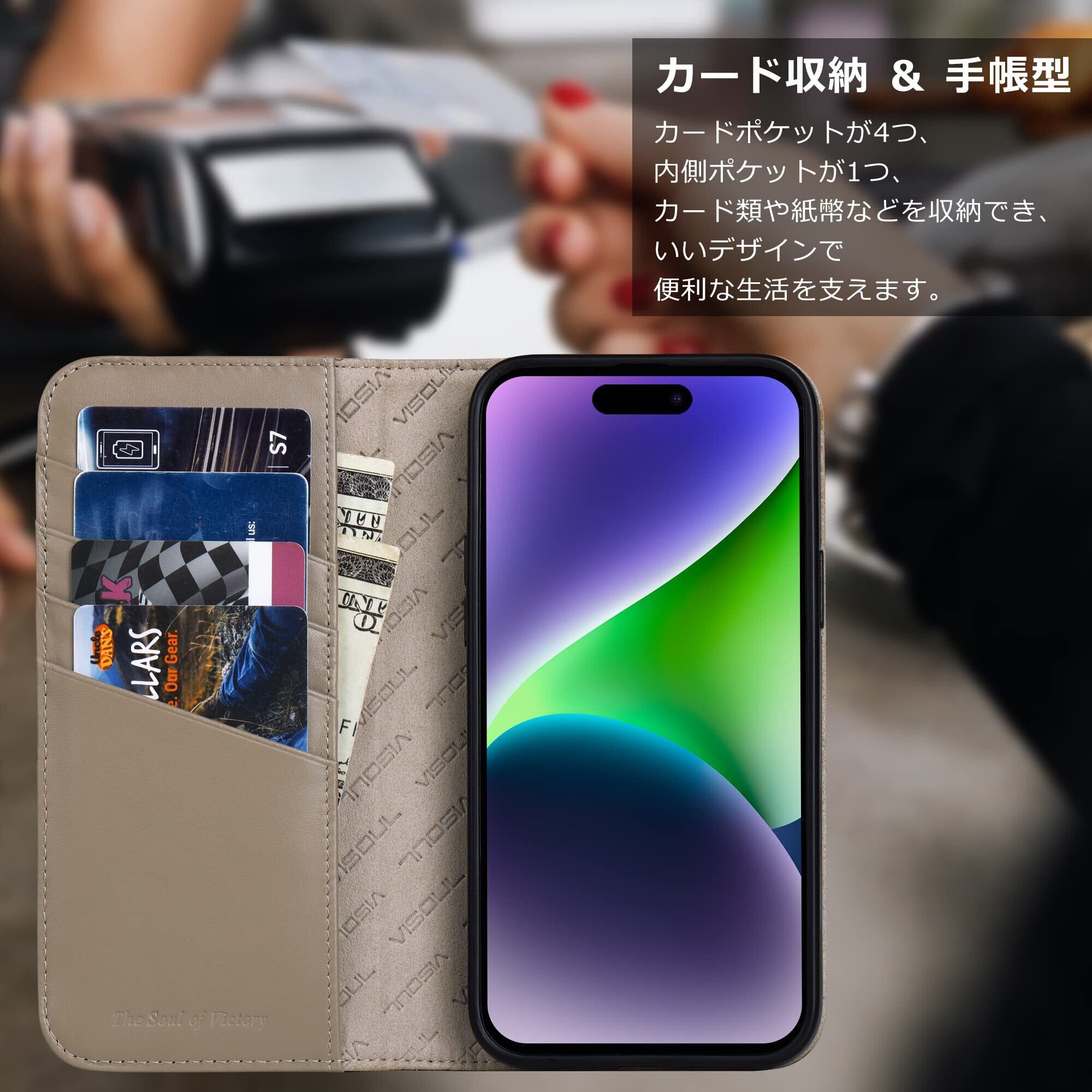 VISOUL iPhone 14 ProMax ケース 手帳型 アイフォン14 ProMax 手帳型 ケース 本革 レザー スマホケース カード収納 携帯ケース 全面保護 マグネット 横置きスタンド機能付き 柔軟なTPU素材 落下防止 iPhone 14 ProMaxケース アイフォン14 ProMax ケース iphone 14 ProMax 対応 6.7インチ カーボンレザー.ベージュ