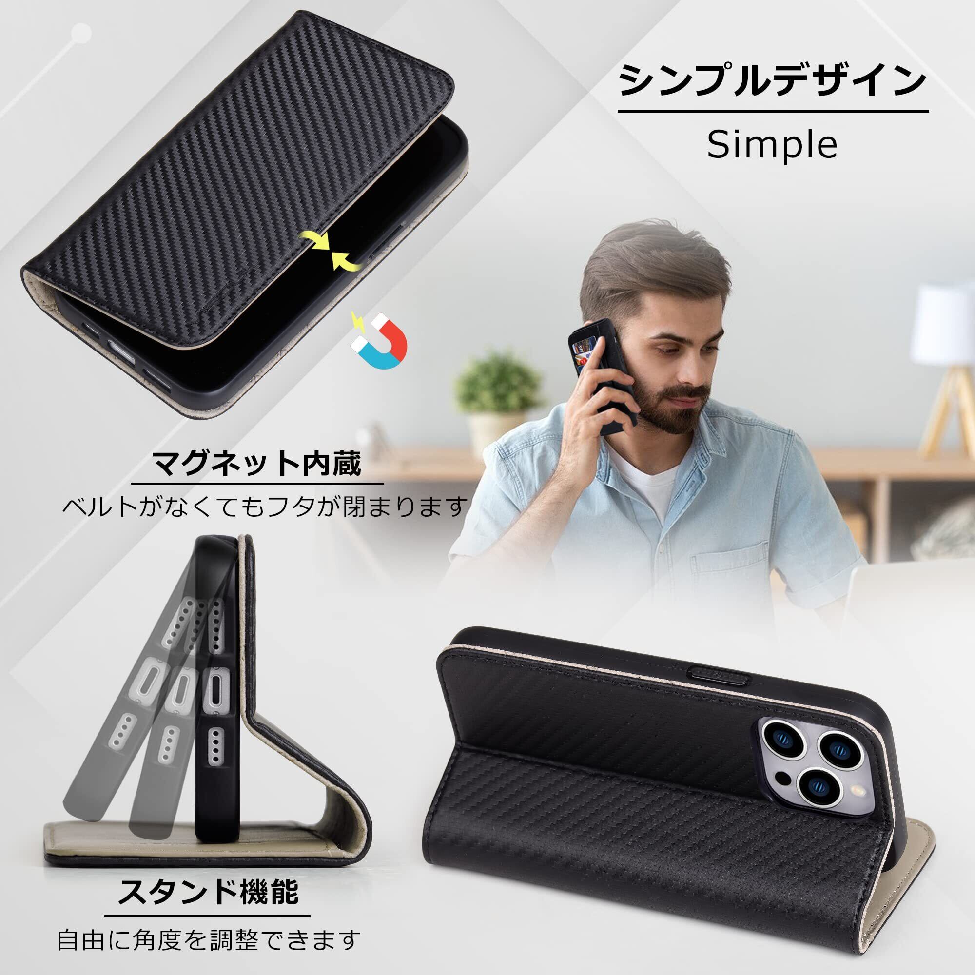 【収納機能、横置きスタンド機能】iPhone14ProMaxケース内側に実用性のカード入れポケット×4、内側ポケット×1、カード類、現金、名刺、免許証入れなどを収納でき、通勤も通学にも楽々タイプです。マグネットが内蔵されているので、ベルトがなくてもフタがぴったり閉まります。横置きスタンド機能が付きまして、好きな角度を調節できて、手放しでも動画視聴や読書に楽しめる。