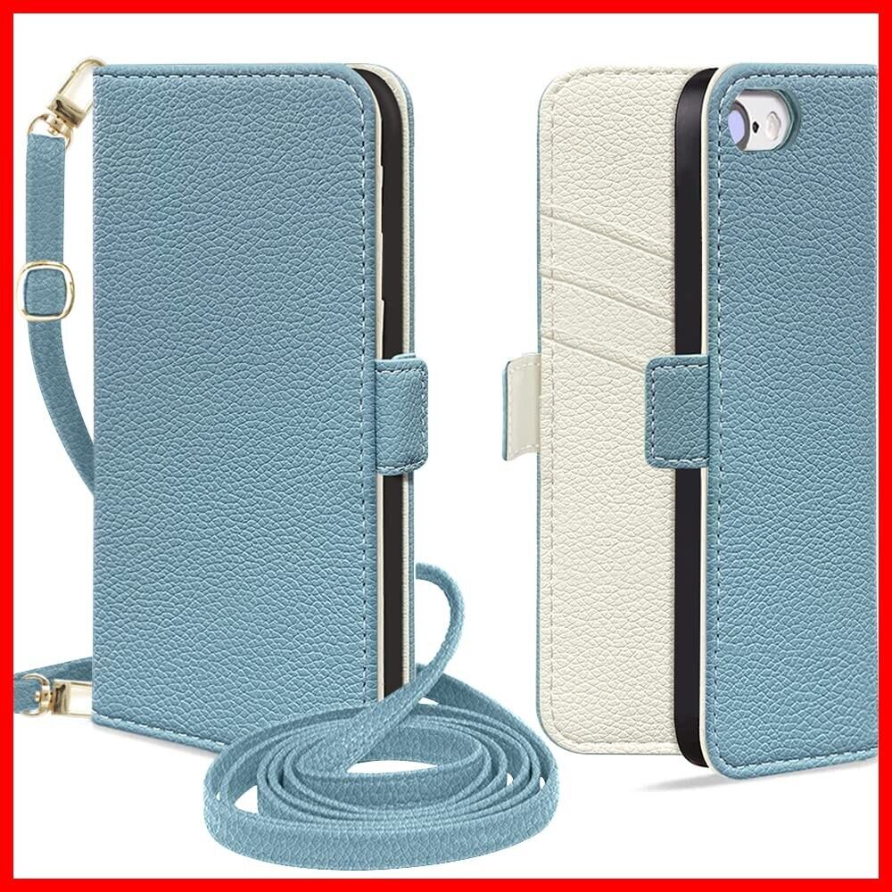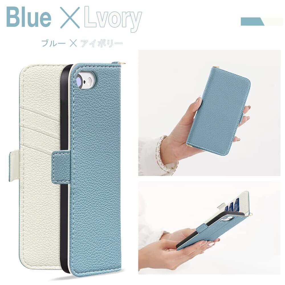 MAGICASE for iPhone SE ケース 手帳型 第2世代 第3世代 ショルダー iphone8 ケース 手帳型 肩掛け スマホケースiphone se おしゃれ 女性 マグネット式 高級PUレザー iPhone se3/se2 ケース 手帳型 かわいい 斜め掛け カード収納 スタンド機能 耐衝撃 放熱性 全面保護 人気 バイカラー 4.7インチ対応(ブルー メ アイボリー) | hananoki