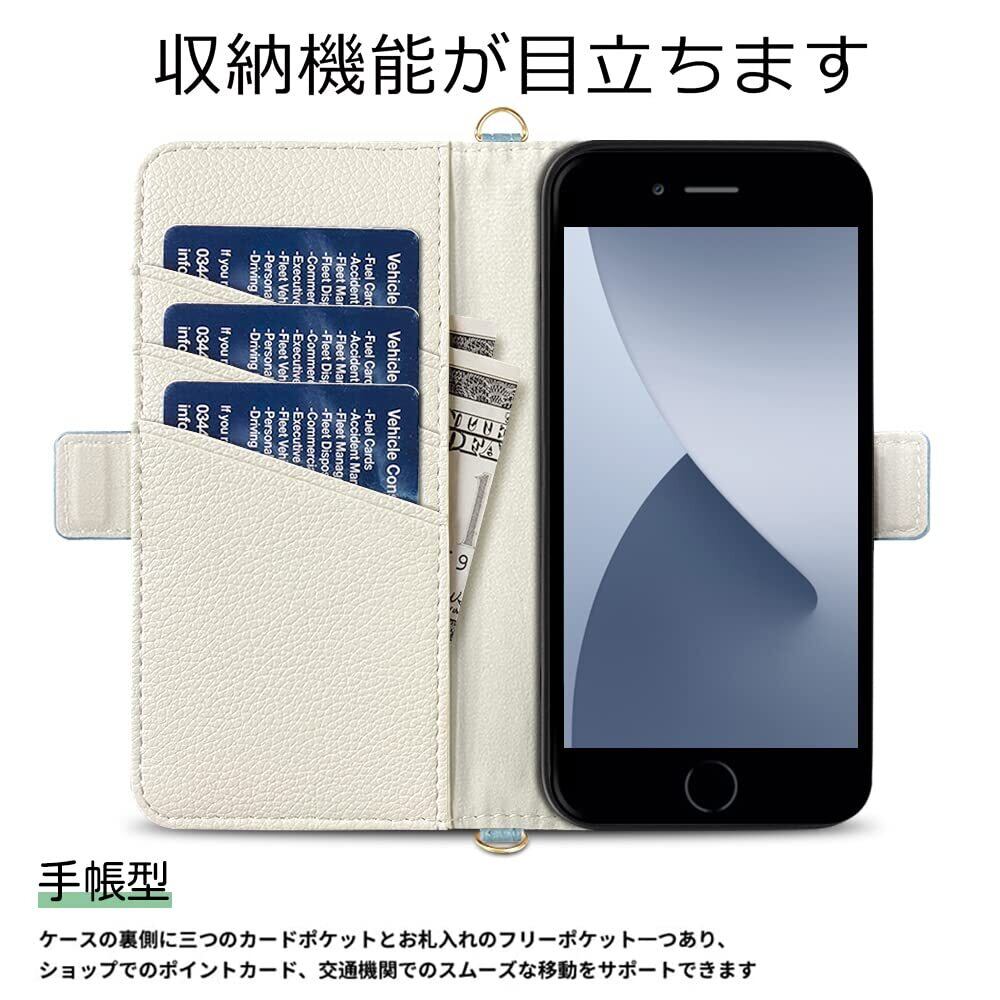 【カード収納 メ 横置きスタンド機能】iPhone SE2/3 ケース 手帳型、内側に実用性のカード入れポケット×3、内側ポケット×1、カード類、現金、名刺、免許証入れなどを収納でき、通勤も通学にも楽々タイプです。水平ブラケット機能が付いており,好きな角度に合わせて動画を見たり読んだりして、両手が解放さ、長時間での新幹線、飛行機の中での暇つぶしに最適ですよね、キッチンでレシピを読みながら料理を作る、肩こりや姿勢の防止に。