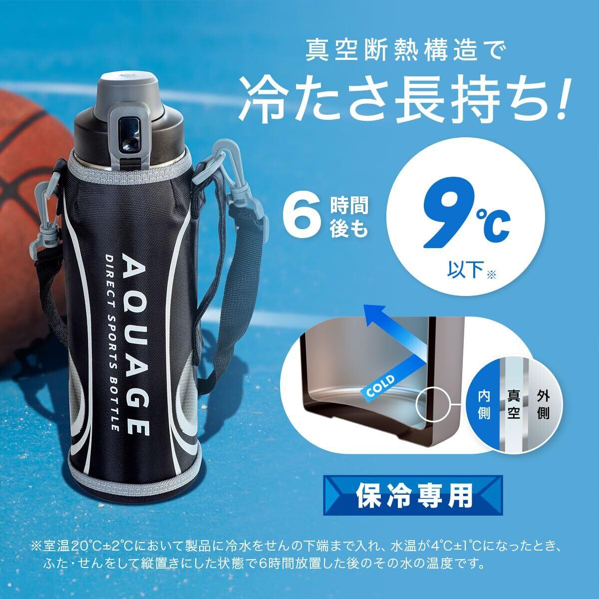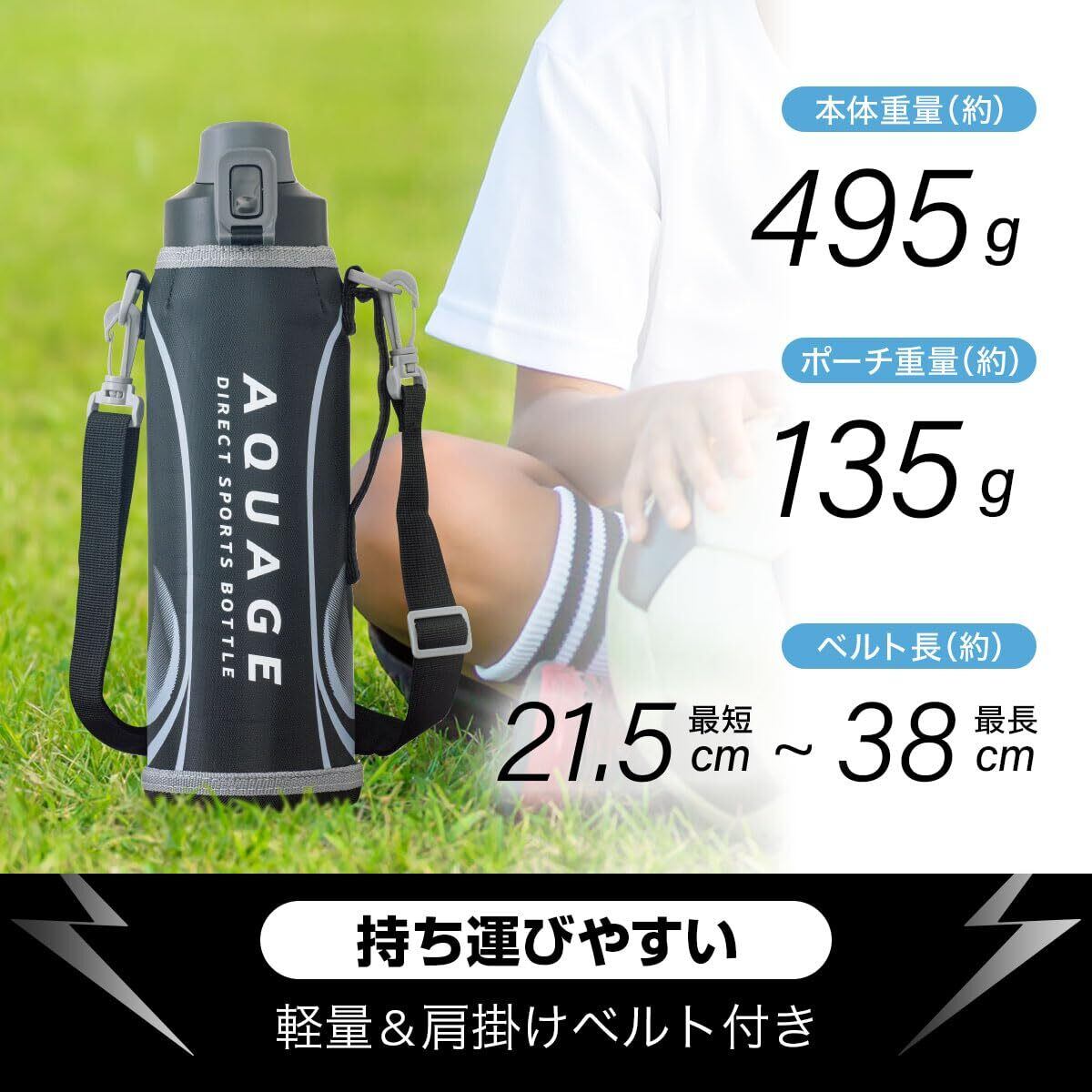 アトラス 水筒 1.5リットル 子供 小学生 直飲み カバー付き 紐付き 直飲み 子ども 保冷専用 ステンレス 真空断熱 軽量 ワンタッチ 洗いやすい AQUAGE アクアージュ ADBT-1501