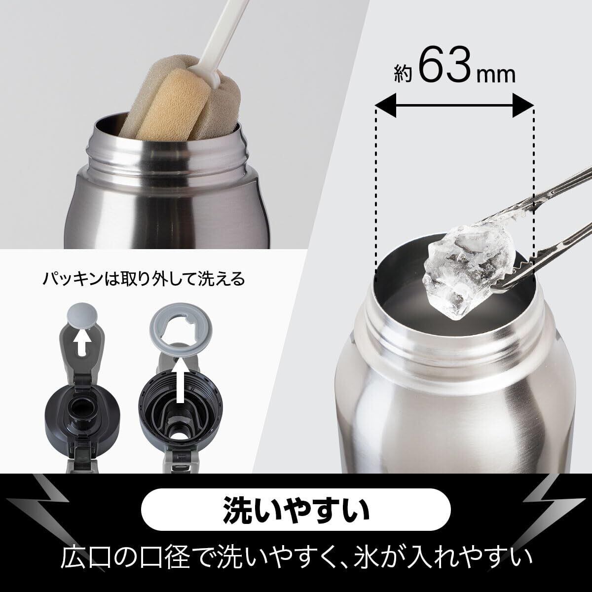 真空二重構造で熱が伝わりにくく、冷たさを保ちます。フタをあけてそのまま飲める直飲みタイプ。保冷専用。