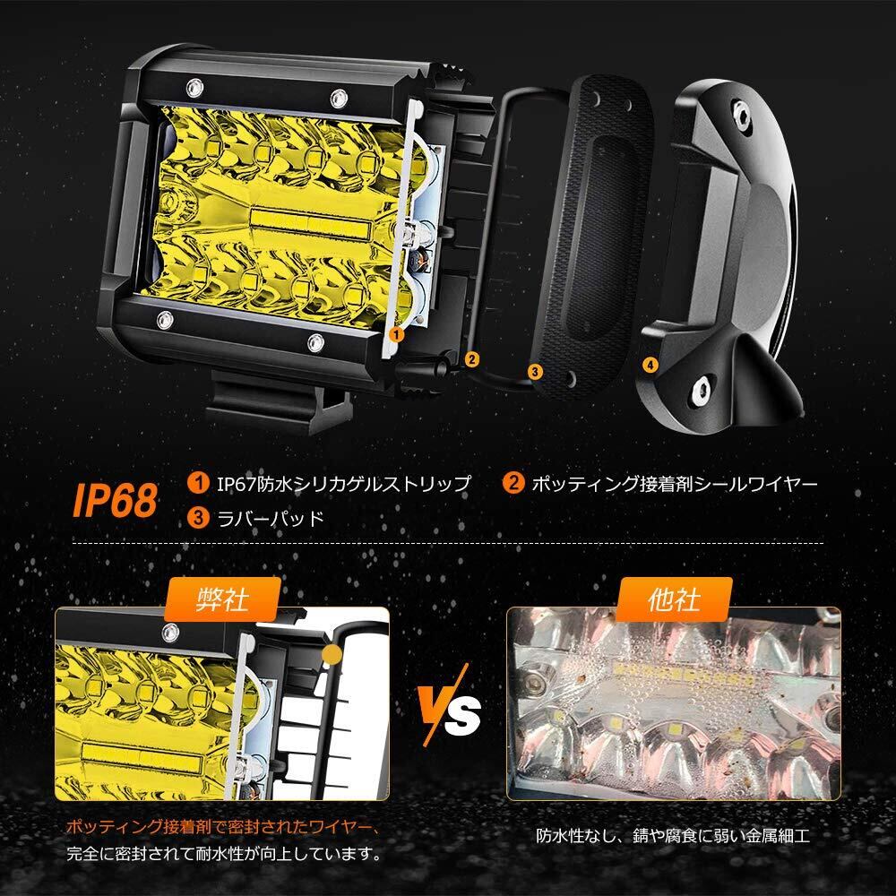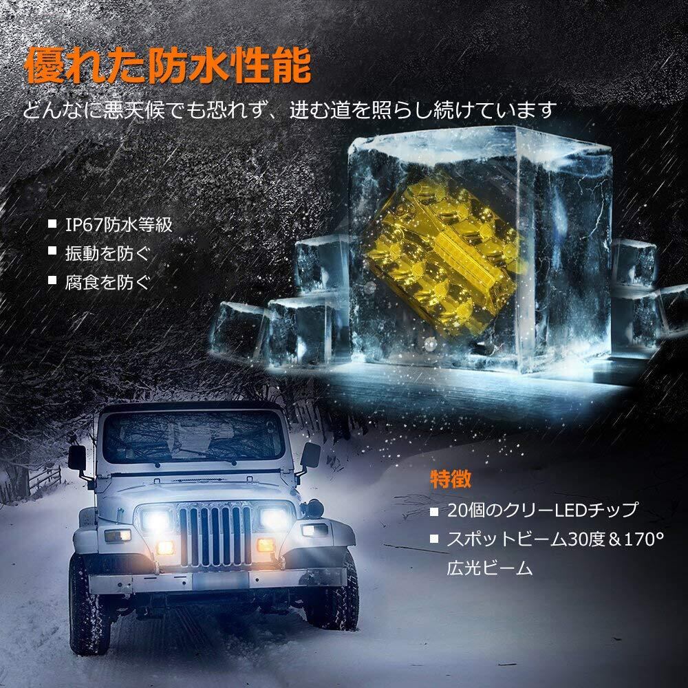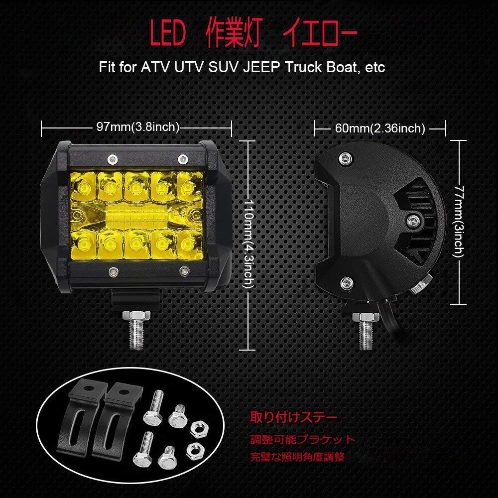 Chelhead 作業灯 イエロー バイク フォグランプ led 4インチ 角形 60W LED ワークライト 12V-24V対応 汎用 車外灯 補助 農業機械 2個セット