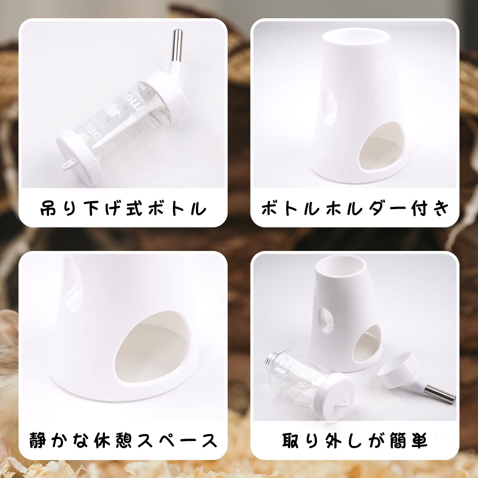 ハリネズミ ハムスター リス 水飲み器 自動給水器 ウォーターボトル ボトル ホルダー付き 水漏れ防止 便利 取り付け簡単 多機能 小動物 飼育ケージ内装 小動物の隠れ家 (ホワイト)