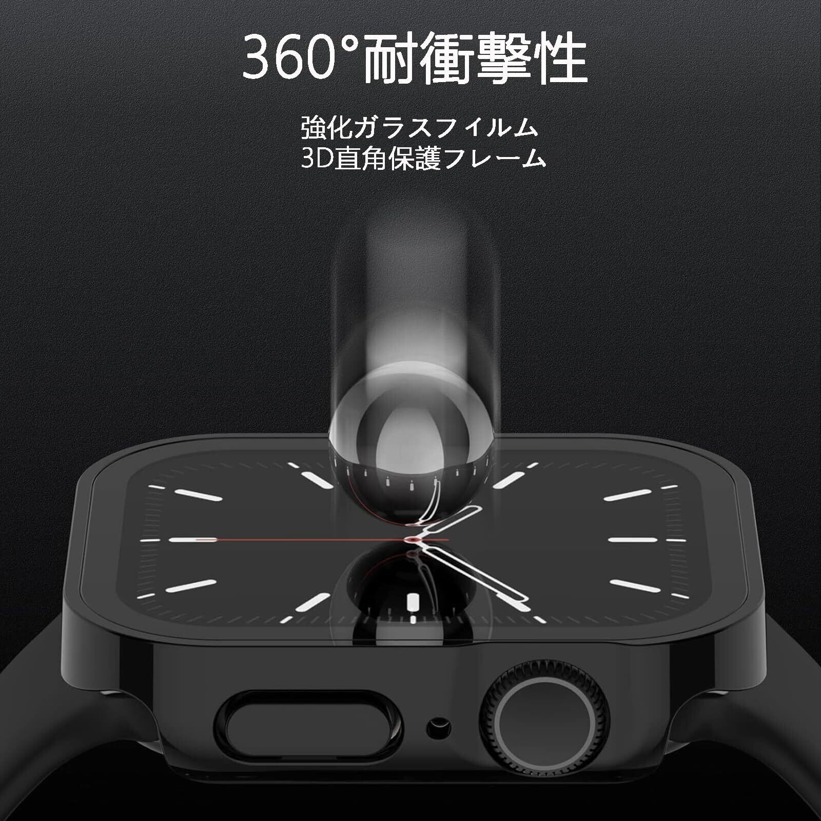 【2025新型】FALSAD Apple Watch カバー 46mm/42mm/44mm/40mm/45mm/41mm 対応 アップルウォッチ Series10/9/8/7/6/5/4/Se/Se2保護ケース、新デザイン3D直角エッジ PC+ガラス画面 防水 耐衝撃 超薄型 軽量 高透過率 高タッチ感度 指紋防止 装着簡単 一体型 全面保護(iWatch 44mm ブラック)