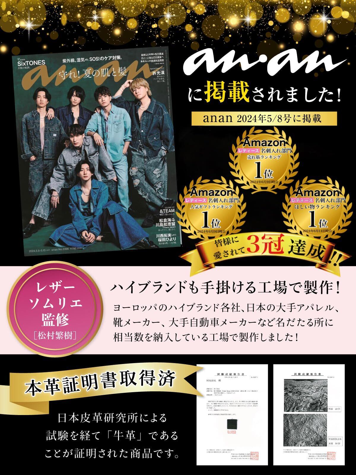 【傷が付きにくくて長持ち】シボが特徴の革『シュリンクレザー』を採用!軽くて丈夫で傷が付きにくく、見た目も上品で人気の革です。本製品は販売前に日本皮革研究所へ本革検査を依頼。試験を経て『牛革』であることが証明された商品です。