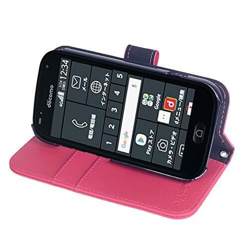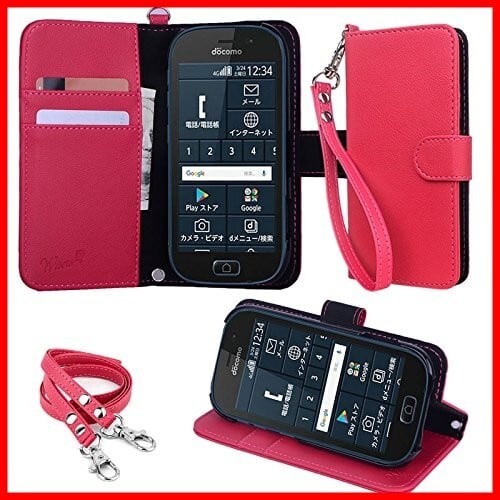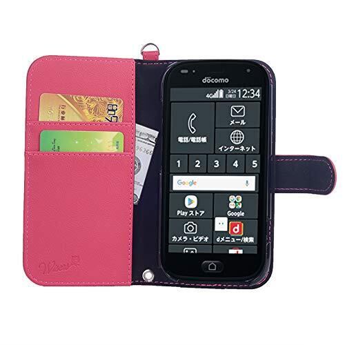 wisers らくらくスマートフォン F-42A / me F-01L 対応 手帳型スマホケース (ピンク) 着脱しやすい (カードホルダー/スタンド機能付き) ストラップ 2種付き (ハンドストラップ/ネックストラップ)