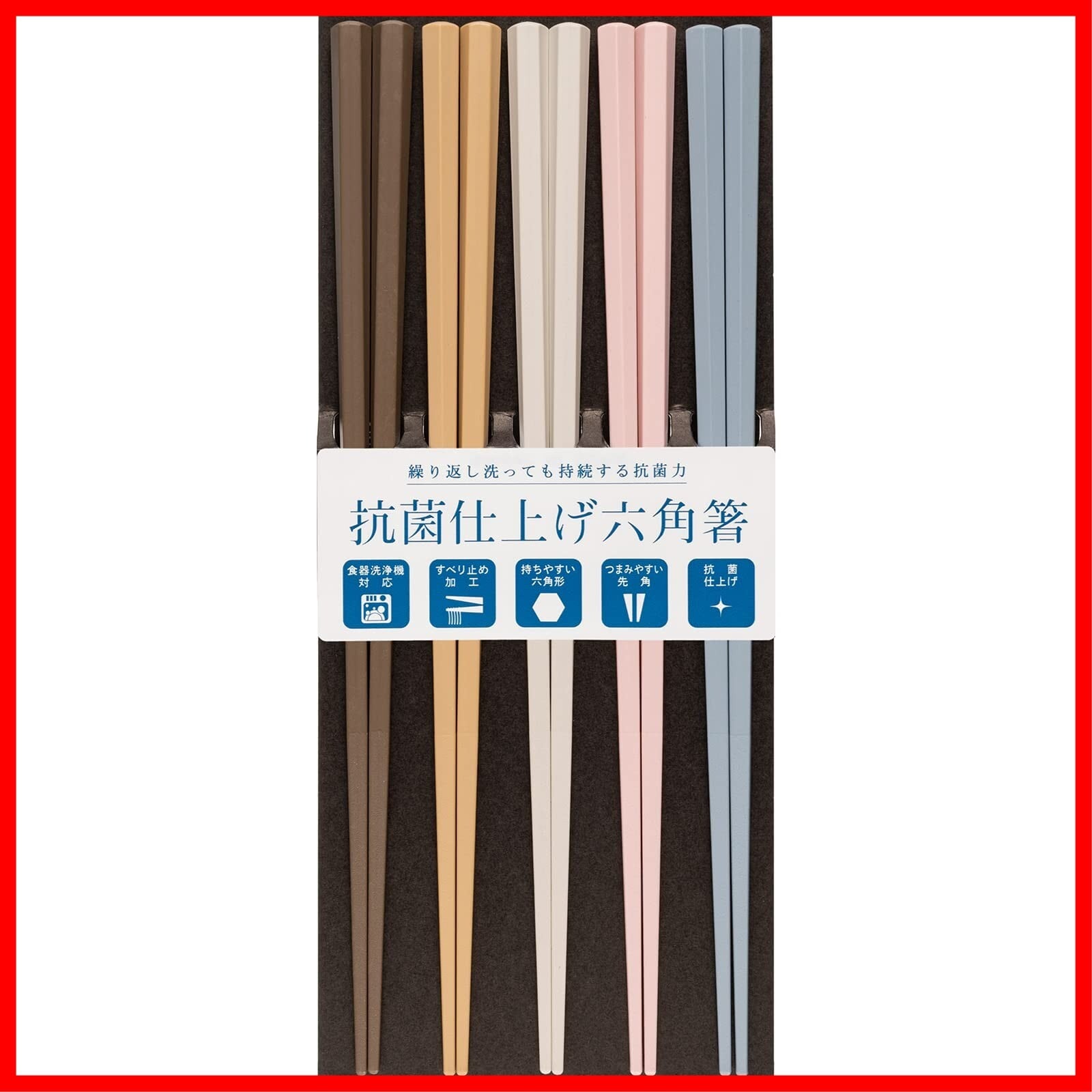 箸 抗菌仕上げ 食洗機対応 23cm 5色 5膳 セット 業務用 来客用 先角 彩り六角 日本製 264918