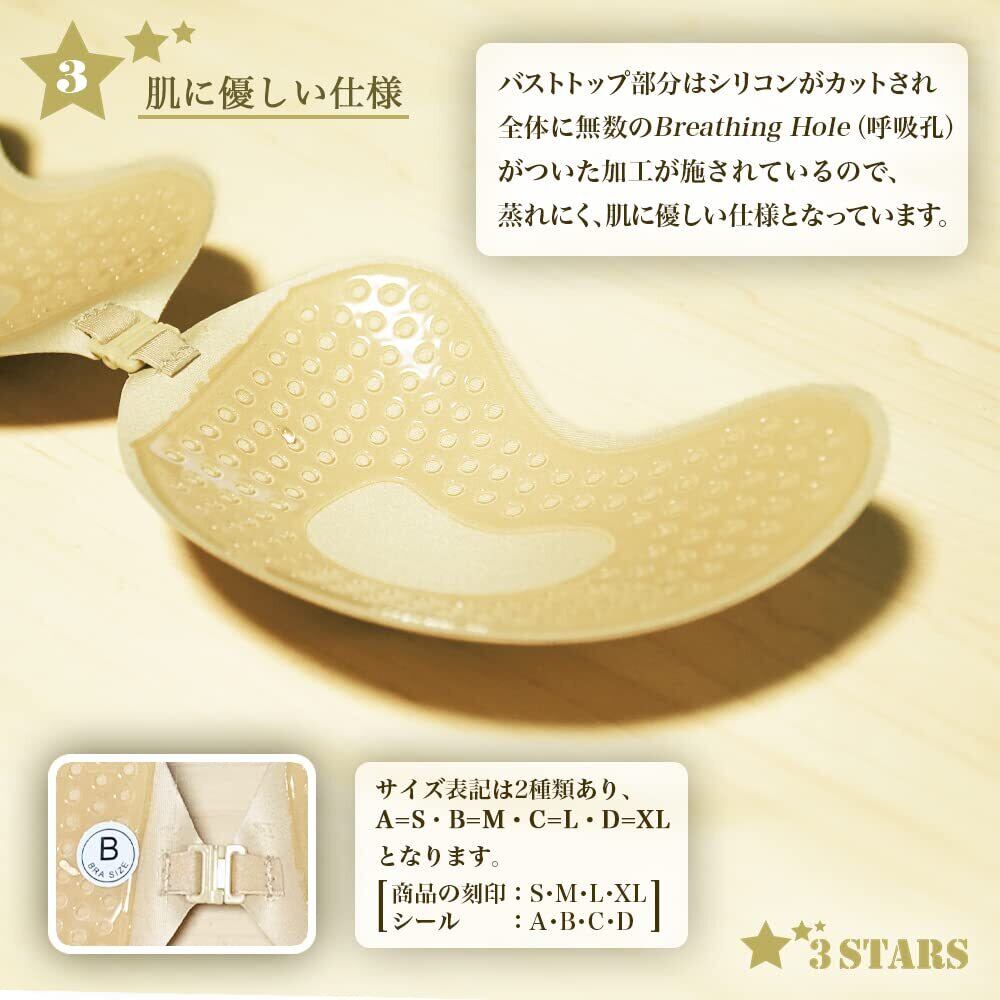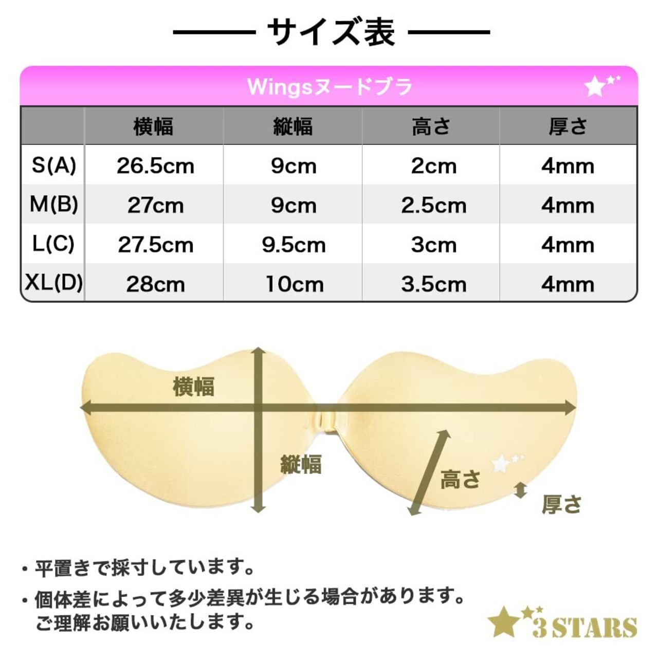 3STARS(スリースターズ) Wingsヌードブラ シームレス シリコンブラ フロントホック 薄型 谷間メイク