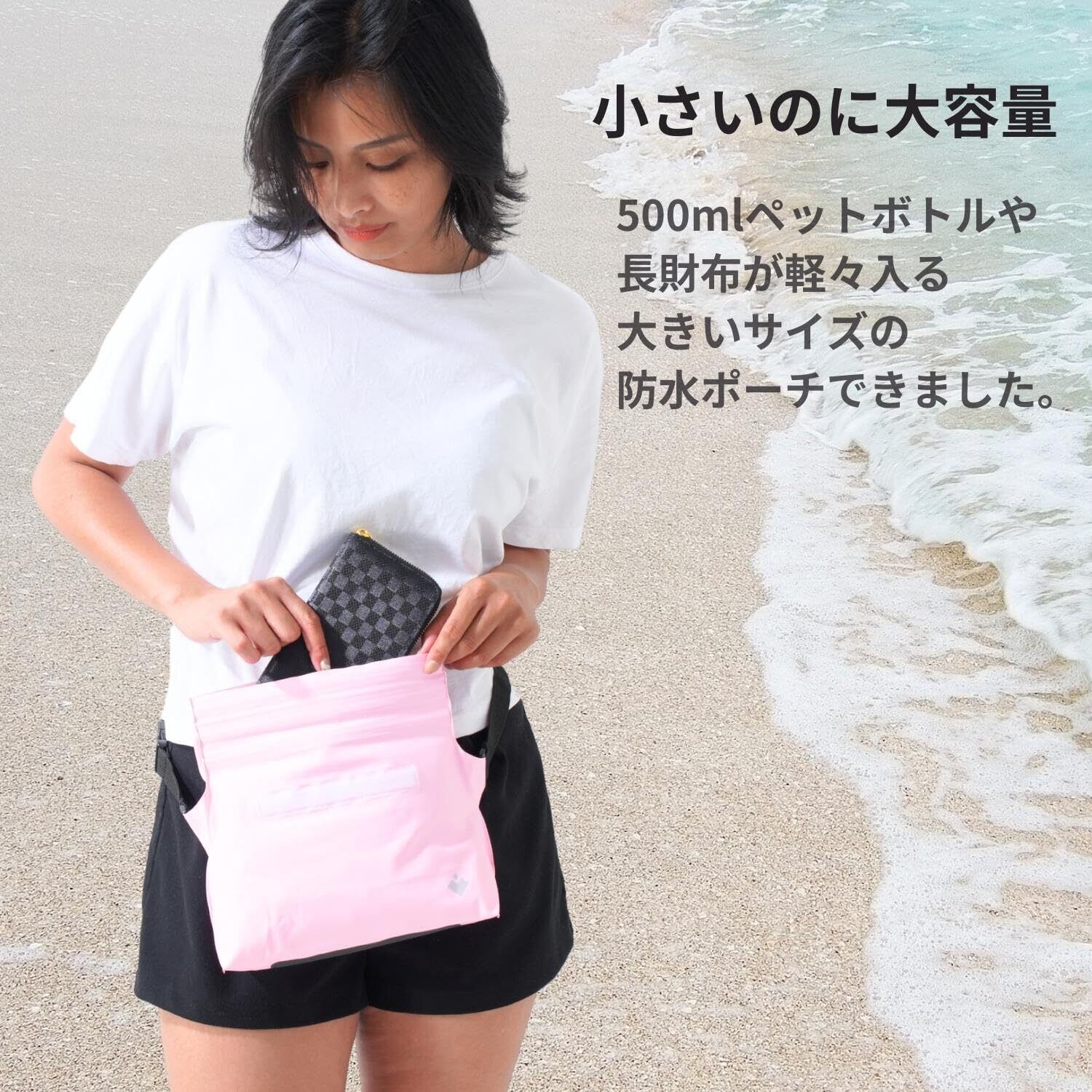 【完全防水・長財布が入る大容量!8cmマチ付き】 水着、スマホ、カメラ、キーケース、財布、サングラス、500mlペットボトルまで収納できる大容量防水ケース。人気の防水ポーチに8cmのマチをつけ、さらに大容量になりました。