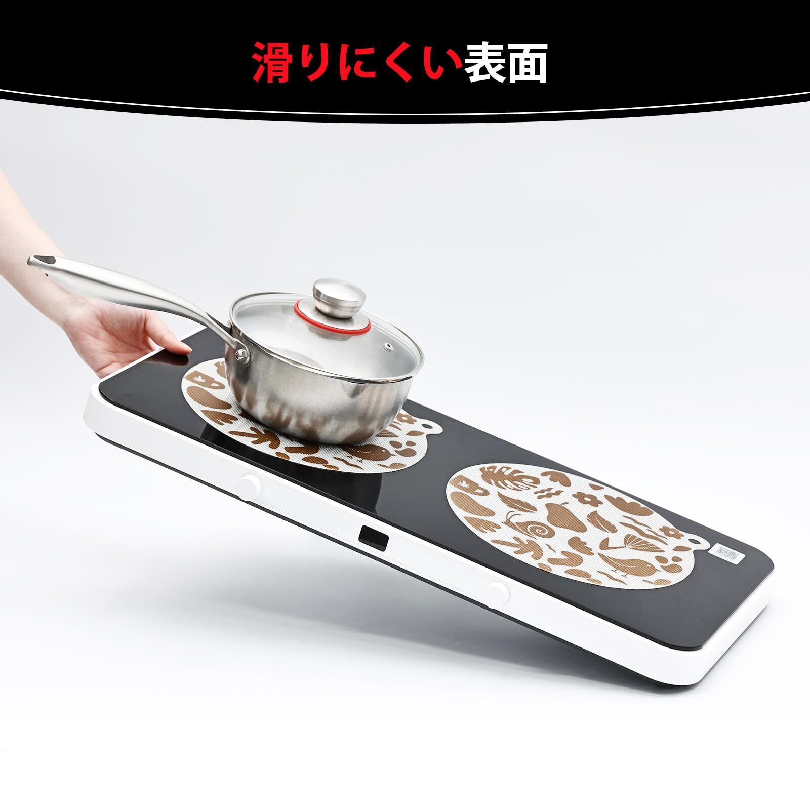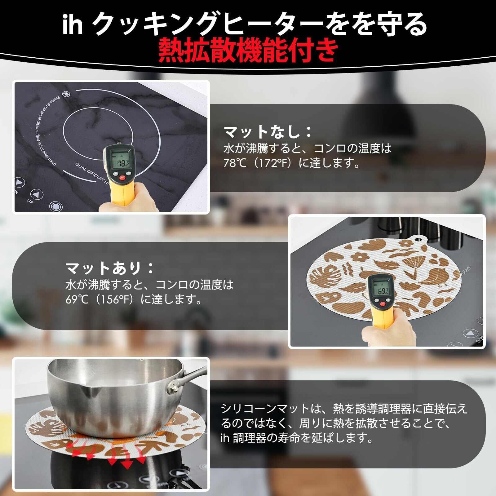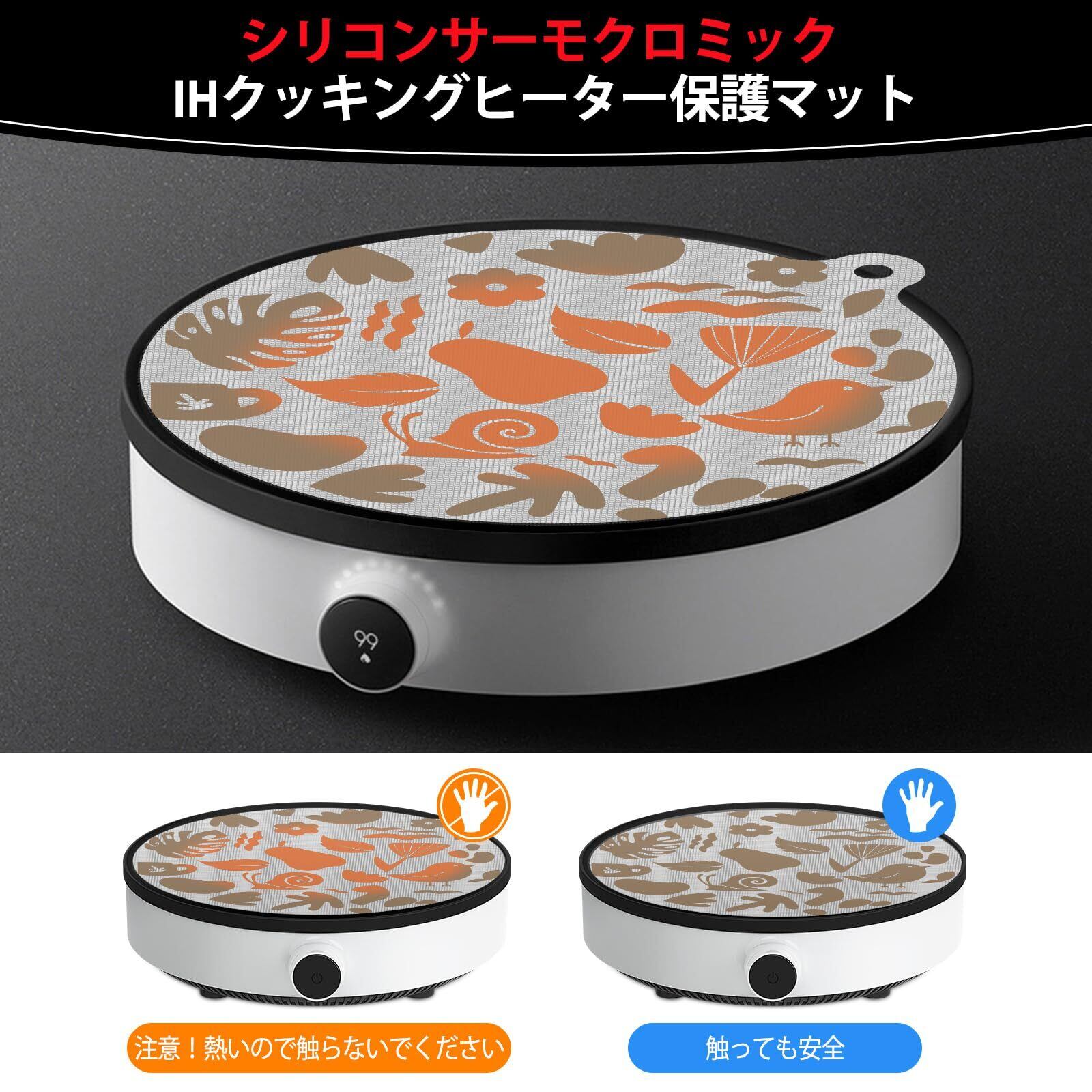 KR KITCHENRAKU ihマット ihクッキングヒーターマット 温度変化により色が変わる 白系グレーtoオレンジ 柄1 24cm 2枚 滑り止め 夏っぽい 傷防止 シリコンマット 断熱パッド | hananoki