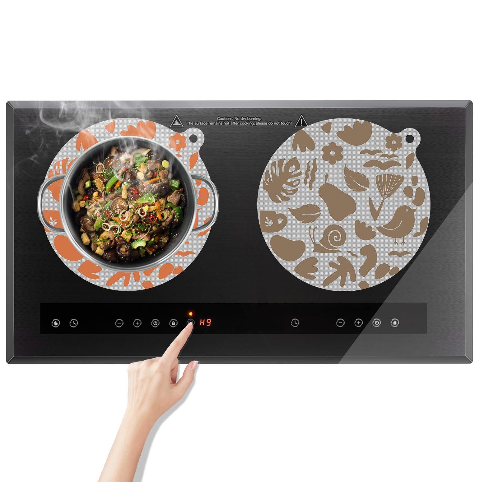 KR KITCHENRAKU ihマット ihクッキングヒーターマット 温度変化により色が変わる 白系グレーtoオレンジ 柄1 24cm 2枚 滑り止め 夏っぽい 傷防止 シリコンマット 断熱パッド