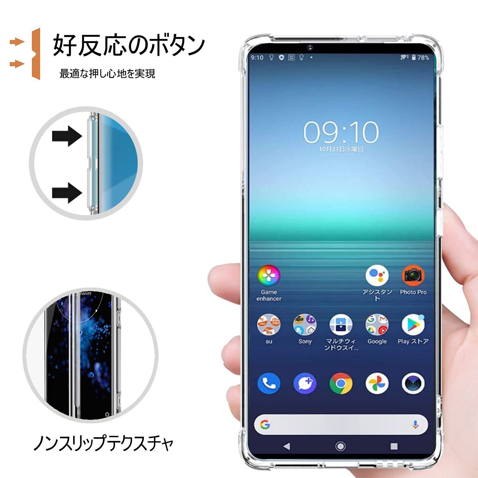 [おしゃれなデザイン] 衝撃吸収、耐久性が最も効率的で丈夫なの素材の一つであるTPUで作られております。経年変形などの心配がありません。背面が全面透明により、Sonyの美しさをそのまま楽しむことが出来ます。Sony本来の美しさと触感を損なわずに、裸に近い視覚感と使用感を実現しました。本商品は端末に触れるケース裏側に極小さな微粒子上の突起処理を行い端末の発熱を軽減する散熱加工を行っております。 また極微粒子状の突起処理により汚れを逃しやすい構造で本体端末に汚れがつきにくく気泡を防止します。