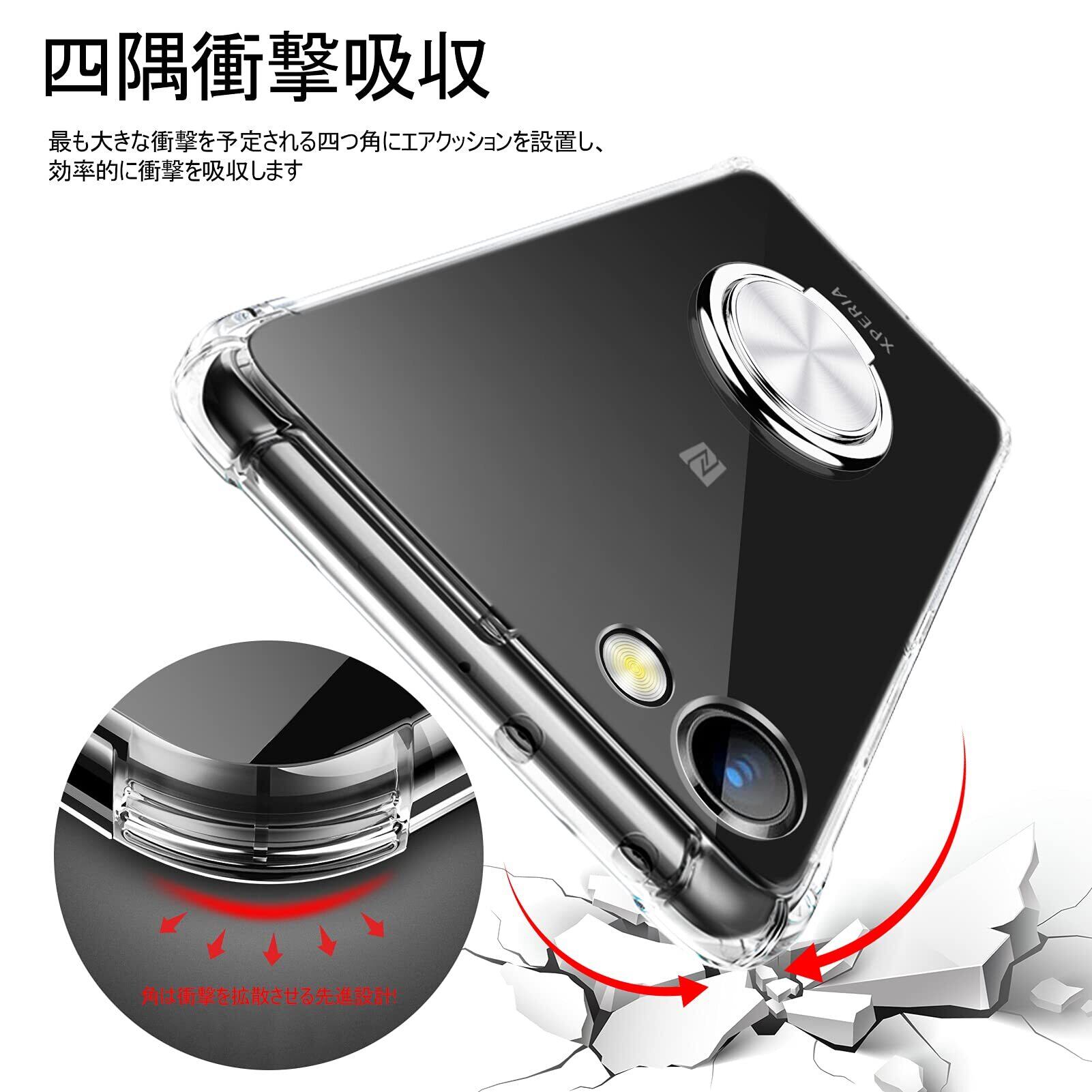 Xperia ACE II ケース リング付き 透明 耐衝撃 TPU クリア SO-41B ケース 車載ホルダー対応 全面保護 ソニー エクスペリア ace IIカバー レンズ保護 軽量 薄型 衝撃防止 カーマウントホルダー 黄変防止 耐久 スクラッチ防止 擦り傷防止 保護カバー KC64-32