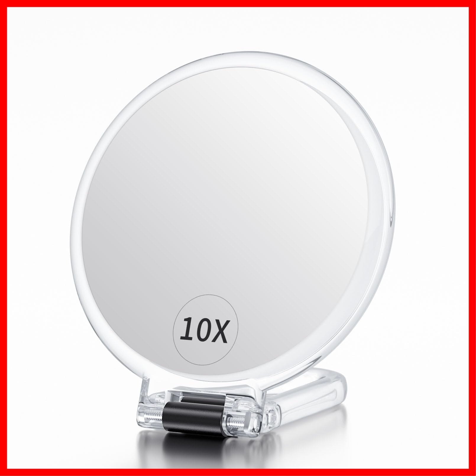 Beautifive 手鏡 拡大鏡 10倍 折りたたみ両面ハンドル付き化粧鏡 コンパクトミラー 10倍と等倍 卓上ミラー コンパクト 持ち運び便利 円形 13.7CM クリア