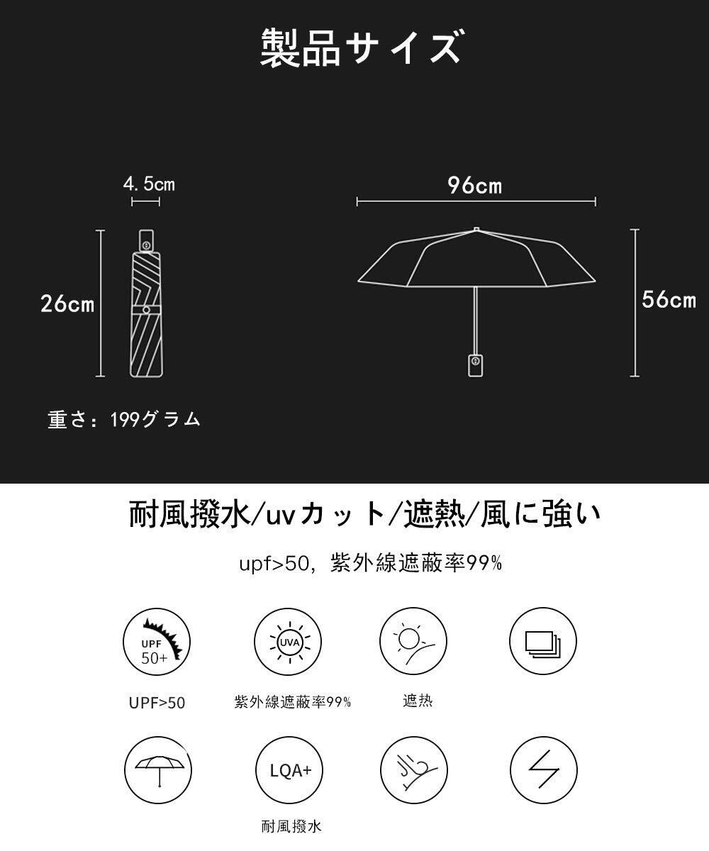 【超軽量折り畳み日傘】 自動開閉折り畳み日傘はガラス繊維と航空アルミ合金傘骨を採用するので、傘本体の重さは199gの軽量化に実現しました。普通の折り畳み傘の半分の重さしかないです、カバンに入れて常備しても負担になりません。持っていることを忘れるくらい、軽くて持ち運び便利!ショッピング途中や旅行をする時に有効な保護を提供します。