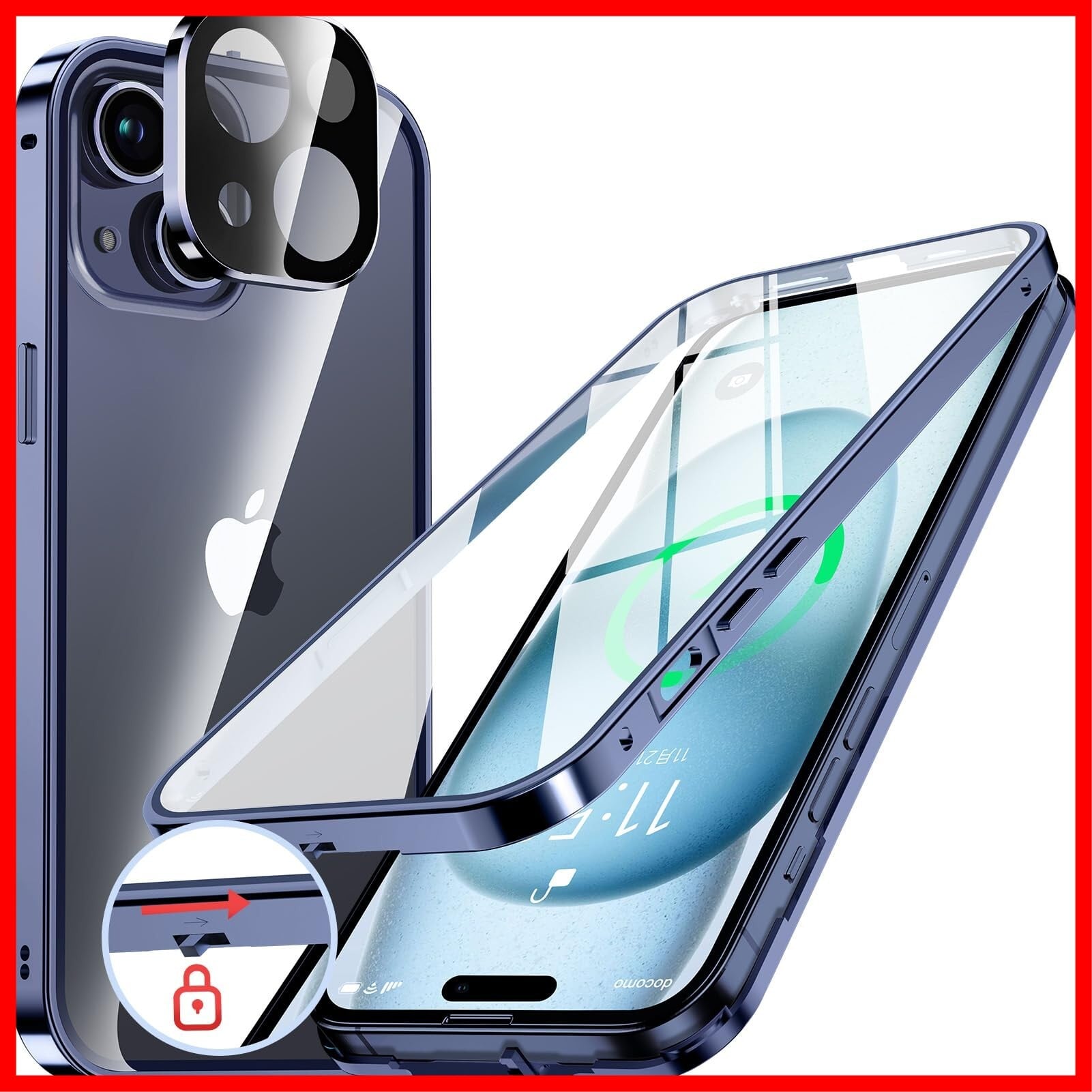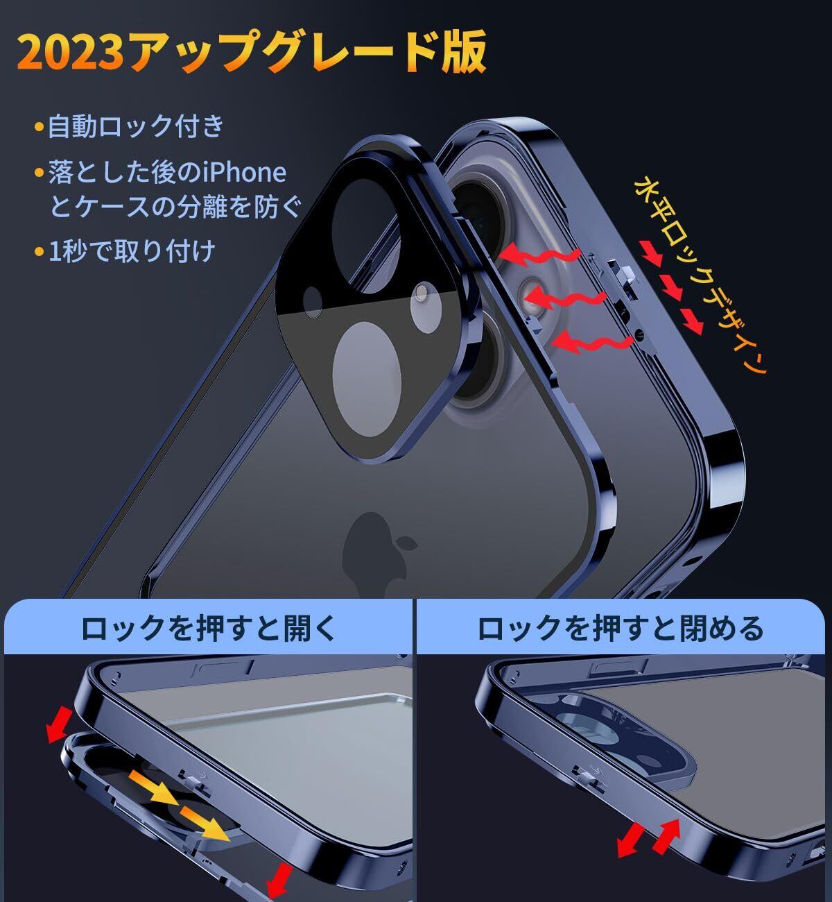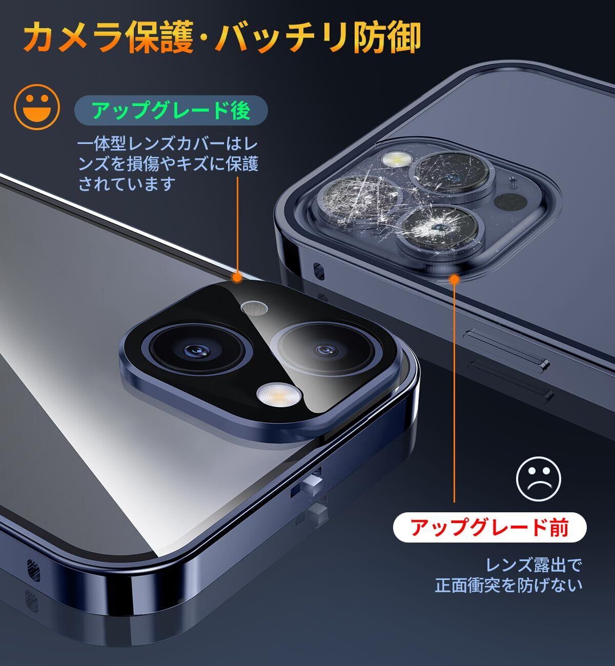 【ロック機能付き・1秒で取り付け・一体型レンズ保護付き】革新的な技術、このiPhone15 両面ケースは上部にスライドボタン式のロックがあり、前後のケースをしっかり固定します。上部のボタンを押すだけで、ロックの解除も簡単、取り付けで開く非常に便利です。こちらのあいふぉん15ケースであなたの大切なスマホを守ってあげてください!このiPhone15 ケースのバンパーとレンズ保護フィルムが一体型になっており、背面カメラ周りを覆い、カメラへの傷を防ぐ、カメラレンズ保護設計です。レンズの保護フィルムの必要はありません。