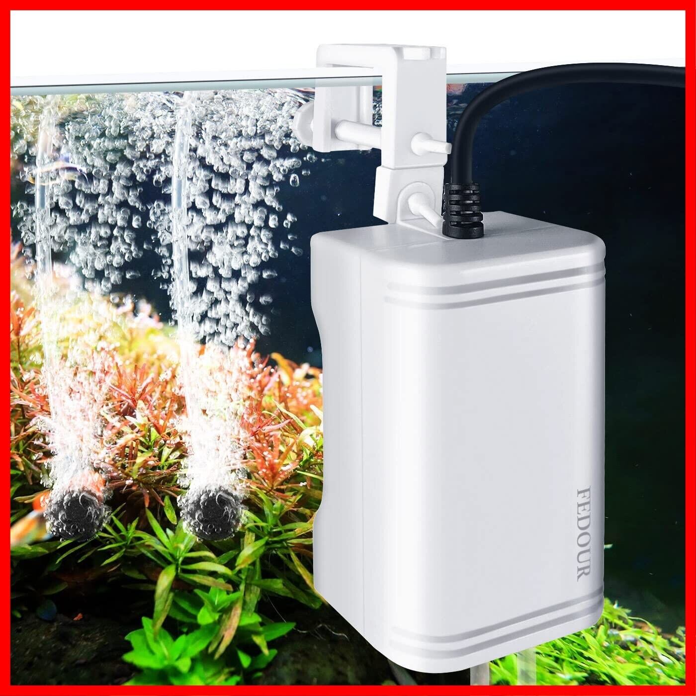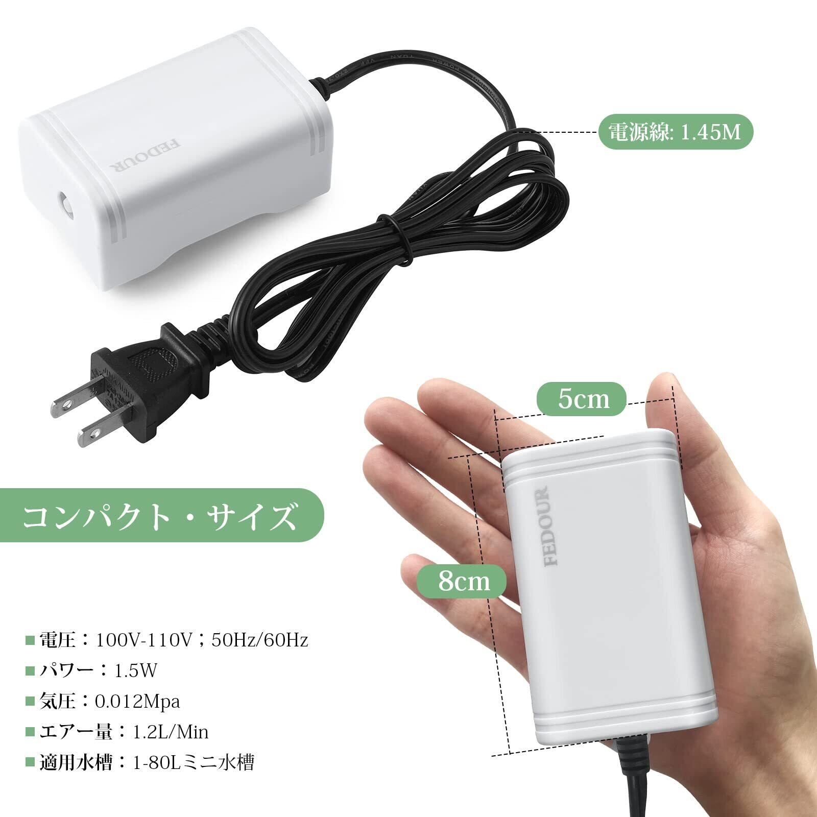 FEDOUR 一つ吐出口 小さい水槽エアーポンプ ミニ魚用静音酸素ポンプ エアー量可調節 水槽に掛けできる空気ポンプ アクセサリー付き