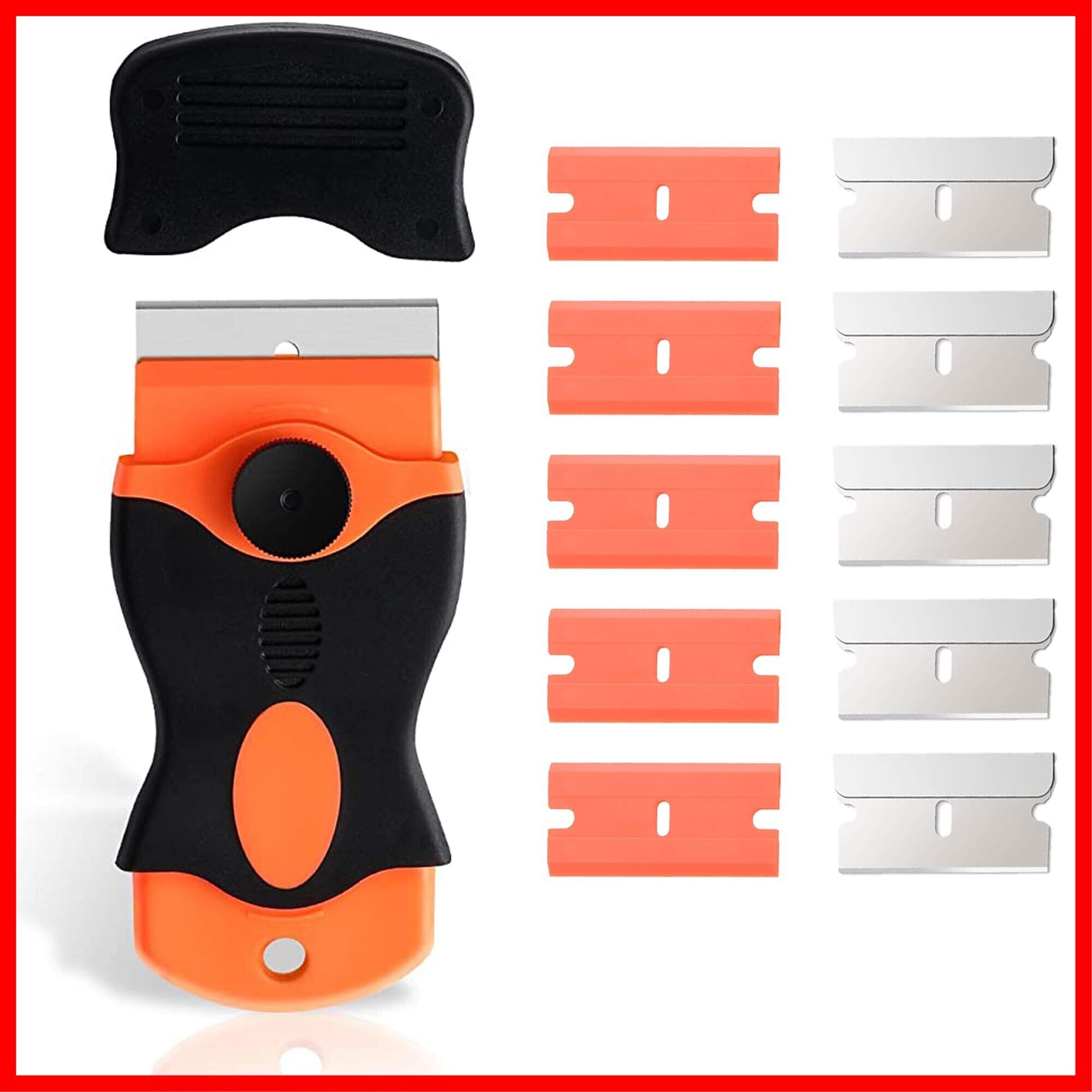 Vitzee プラスチックスクレーパーシールはがしヘラ+5枚プラスチックブレード+5枚スチールブレード 替え刃式シール剥がしヘラ ガラス掃除 お風呂 キッチン 車検カーボンシールはがし ステッカーはがし デカールはがし 両面テープ剥がしヘラ | hananoki