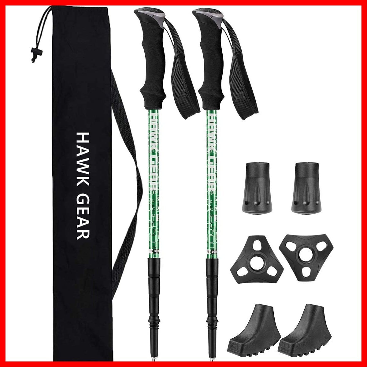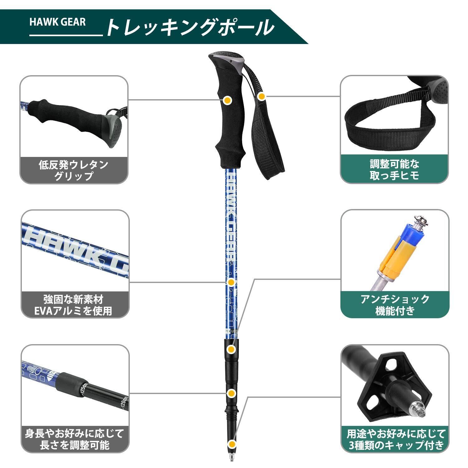 HAWK GEAR(ホークギア)製の超軽量アルミ トレッキングポール 2本セット。アンチショック機能付き。