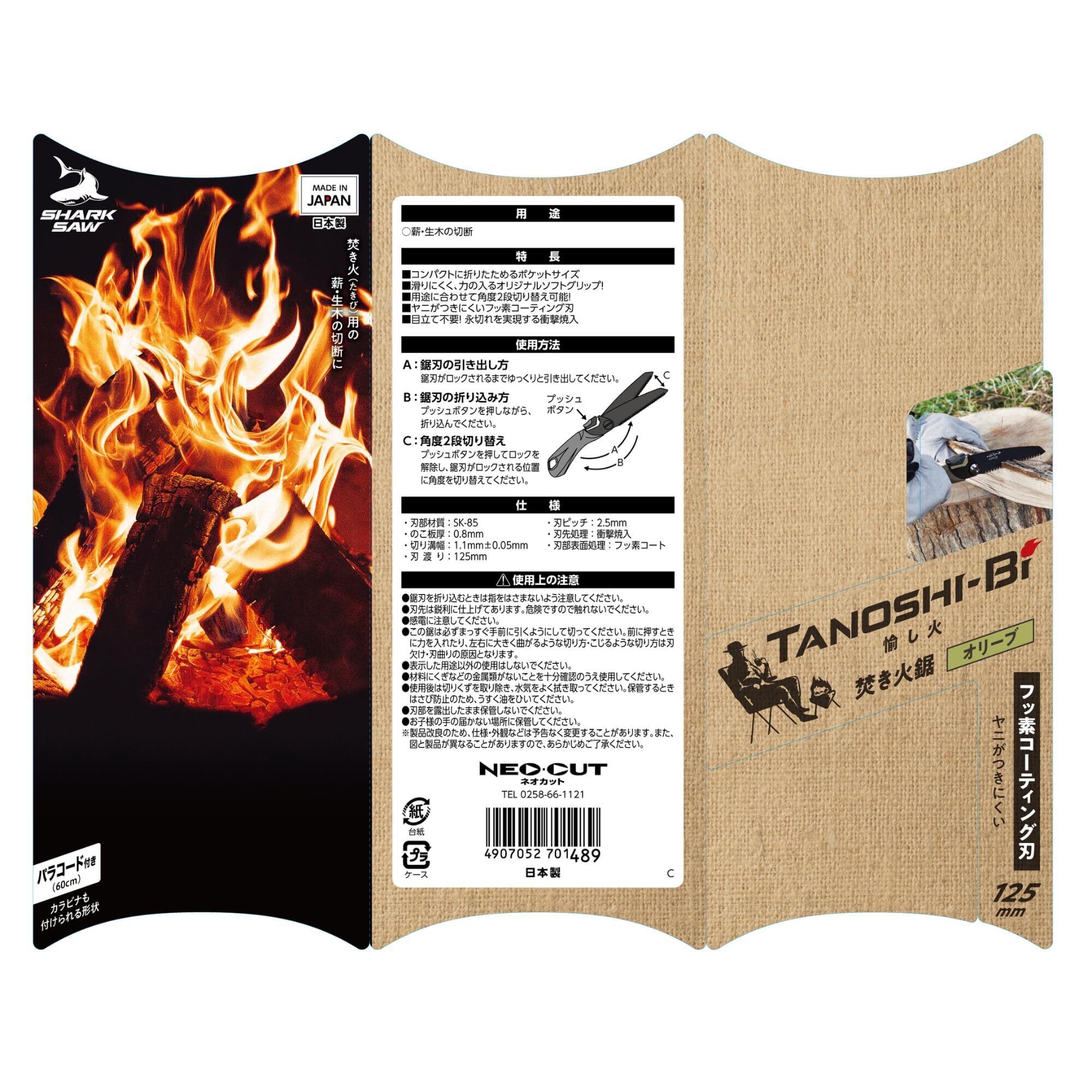 高儀(Takagi) シャークソー 愉し火 焚き火鋸 125mm オリーブ【日本製・燕三条ブランド】【折り畳み式】【キャンプ薪切断に】【目立不要の衝撃焼入】 ノコギリ のこぎり 鋸 小型 キャンプ アウトドア 薪ストーブ | hananoki