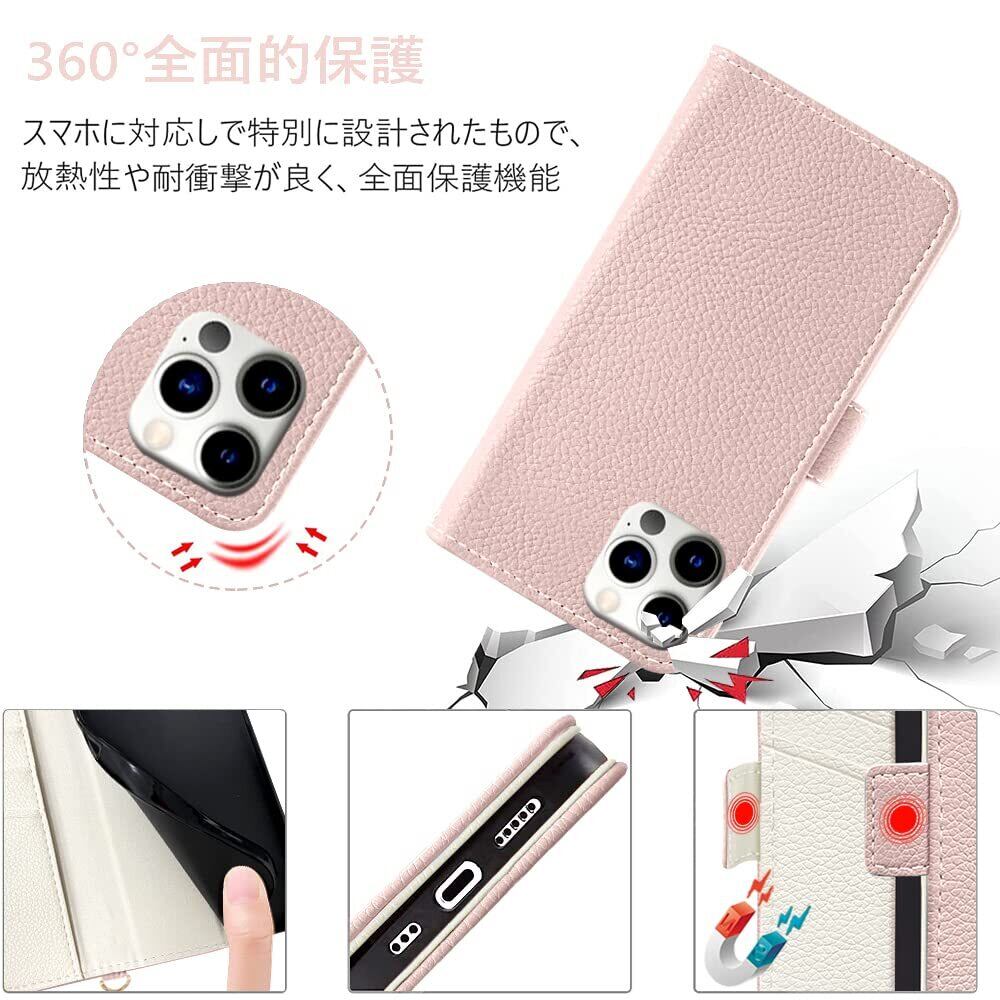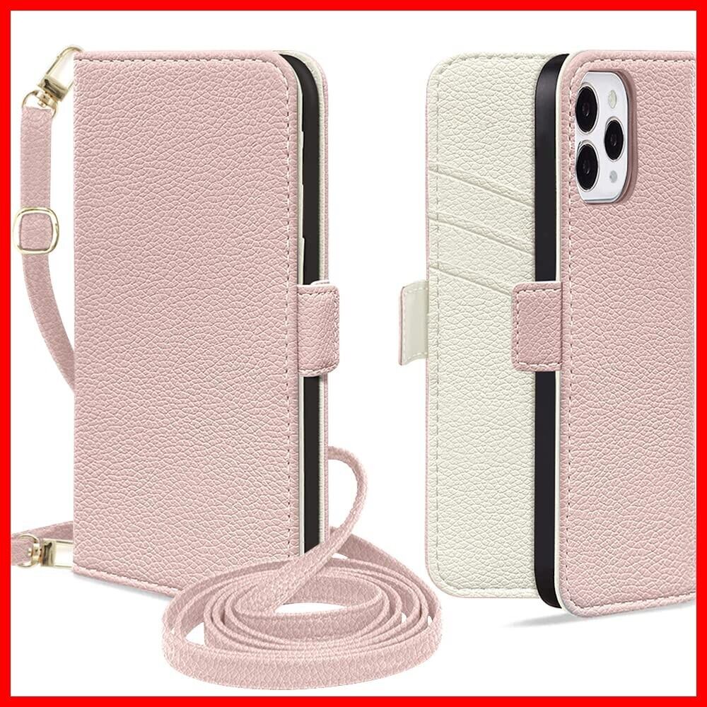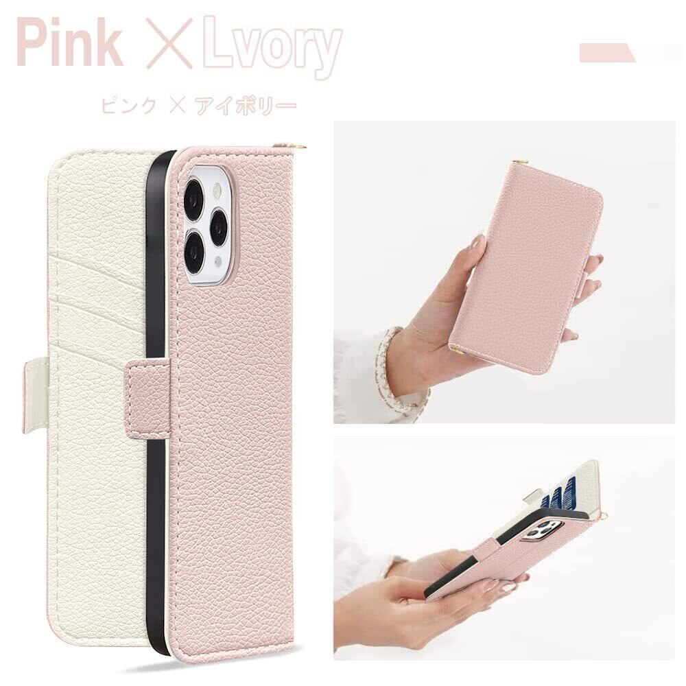 MAGICASE for iPhone12ケース手帳型 iPhone 12 Pro ケース 手帳型 ショルダー スマホケースiphone12 おしゃれ 女性 肩掛け 携帯ケースiPhone12 財布型 マグネット式 カード収納 スタンド機能 iPhone12 手帳型ケース ストラップ 可愛い 高級PUレザー 耐衝撃 軽量 放熱性 全面保護 iPhone12 Pro ケース ブック型 斜め掛 人気 バイカラー 6.1インチ適応(ピンク メ アイボリー)