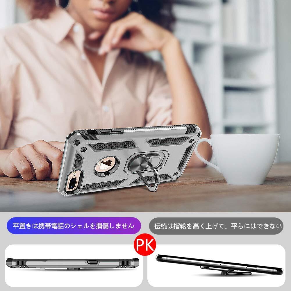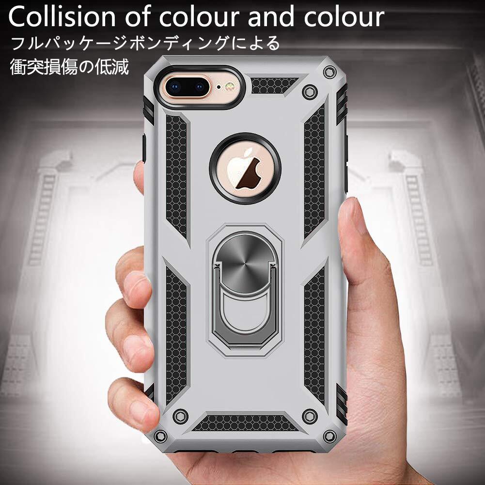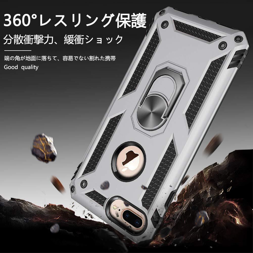 【WYEPXOL】 iPhone 8 Plus 用/iPhone 7 Plus 用ケース リング付き 対応 落下衝撃吸収 TPU PC 米軍MIL規格 二重構造 スマホケース 耐衝撃 車載ホルダー対応 軽量 擦り傷防止 取り出し易い 携帯カバー スタンド機能 落下防止 オシャレ 銀 ZW13-70 | hananoki