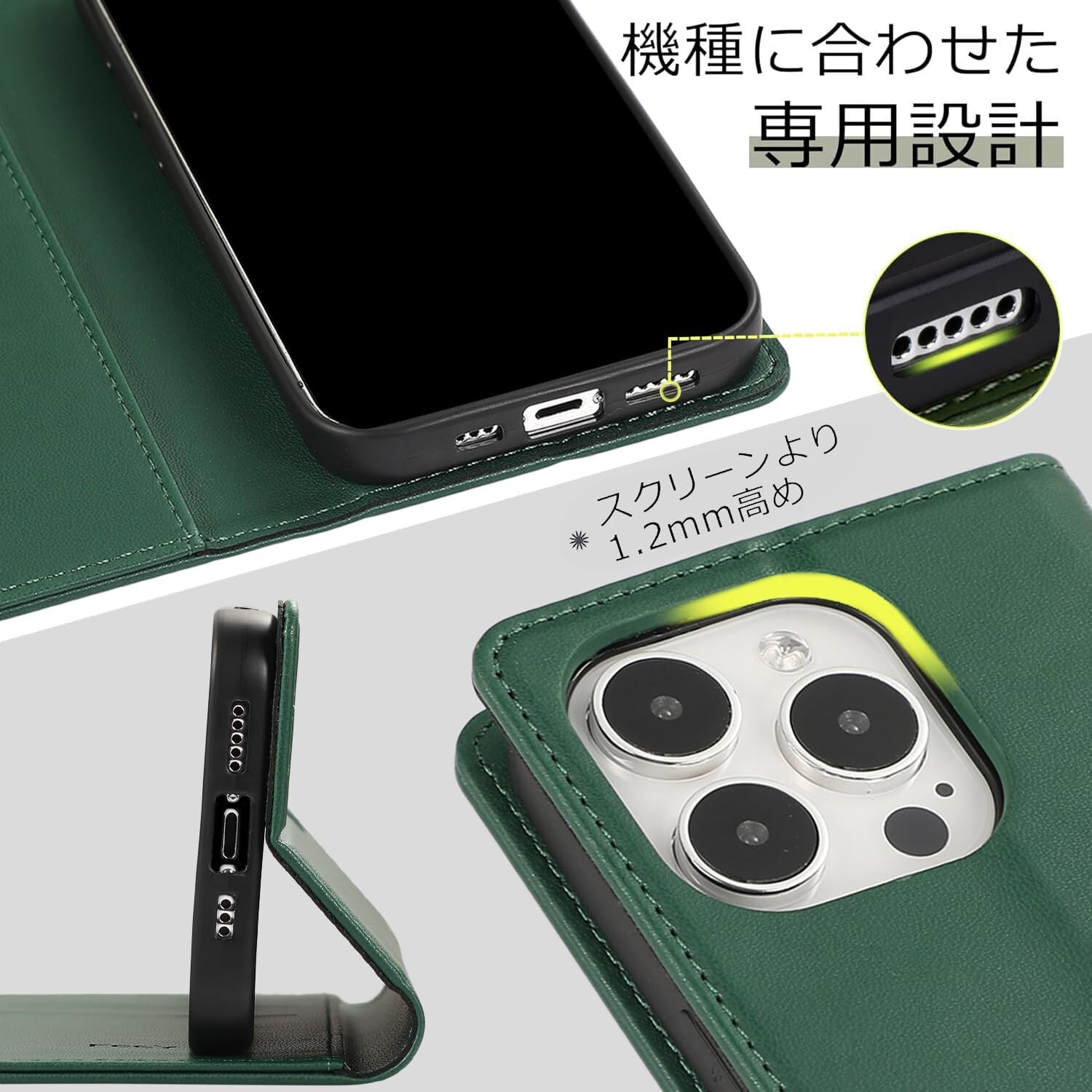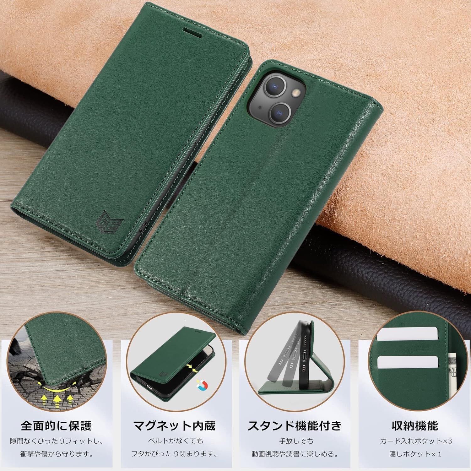 FeeY iphone14 ケース 手帳型 Iphone14 手帳 ケース 耐衝撃TPU素材カード収納 マグネット内蔵スタンド機能付き アイフォン14携帯カバー全面保護 iPhone 14 スマホケース 5G 6.1インチ対応, グリーン | hananoki